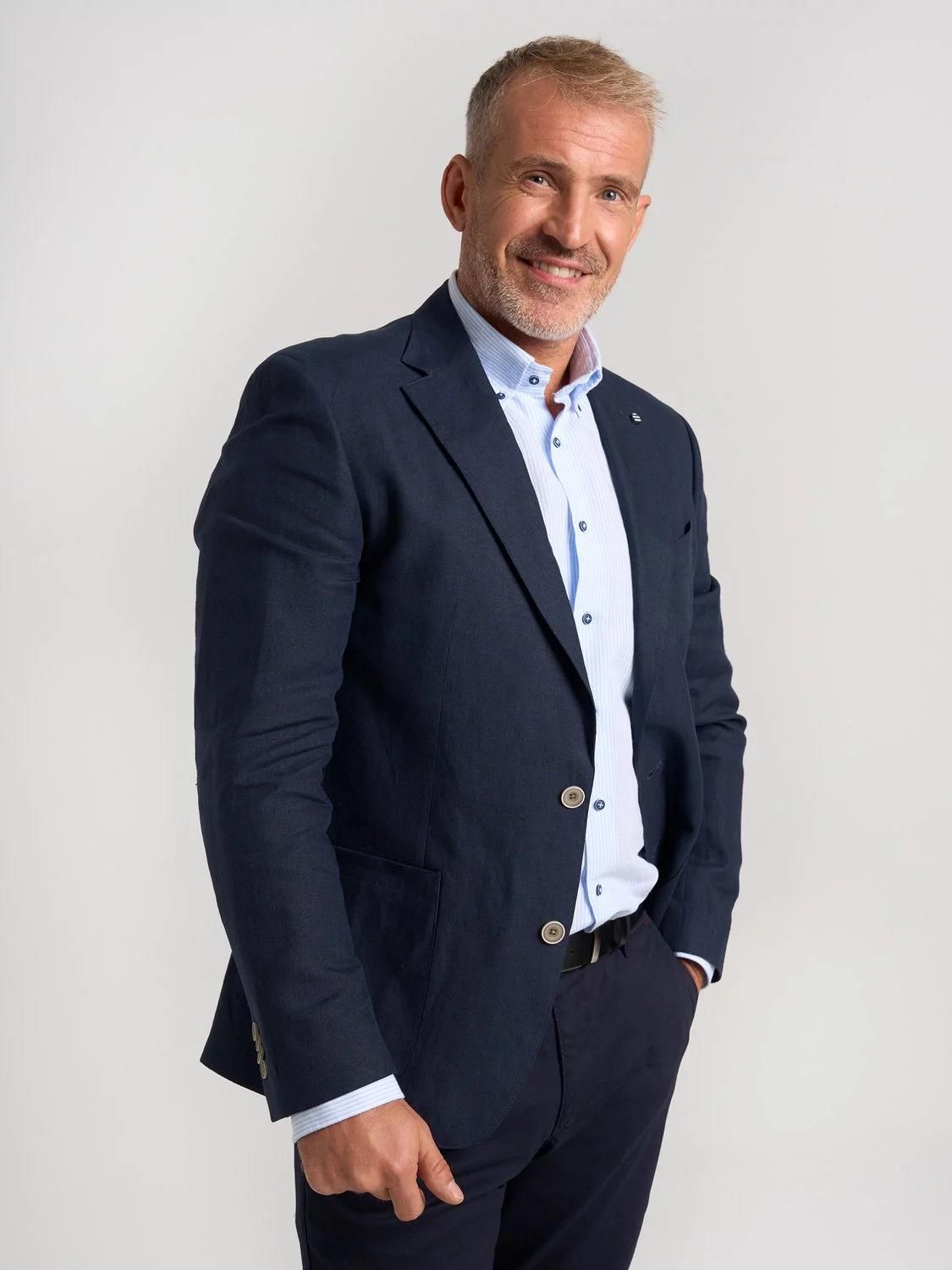 Letnia marynarka z lnu naturalnego Marynarki uszyte z domieszką lekkich tkanin w odcieniach niebieskiego, grafitu i szarości. Pasują na typowe casualowe wyjścia, a dzięki ich fakturze można je zestawiać z mocnymi kolorami i deseniami koszul. Dodatkowe informacje Marynarka w granatowym kolorze Tkanina o gładkiej fakturze Głębokie kieszenie z klapami Zapinana na dwa guziki Klasyczna kieszeń na piersi Posiada krótką podszewkę Producent: Thomas Goodwin Gwarancja: 24 m-ce Skład marynarki 100% len naturalny Skład podszewki 100% poliester