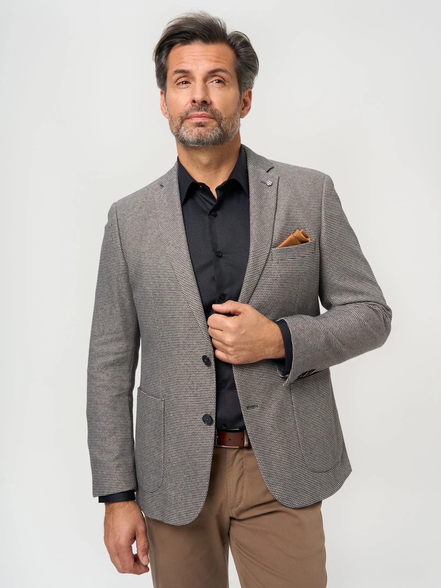 Klasyczna marynarka Gładkie marynarki pasują na typowe casualowe wyjścia. Poprzez ich gładką fakturę można je zestawiać z mocnymi kolorami i deseniami koszul. Dodatkowe informacje Marynarka w kolorze szaro-brązowym Tkanina w delikatny przeplot Głębokie kieszenie bez klap Zapinana na dwa guziki Klasyczna kieszeń na piersi Klasyczna podszewka Kolorowe detale Producent: Venti Gwarancja: 24 m-ce Skład marynarki 70% poliester 30% bawełna Skład podszewki 100% poliester