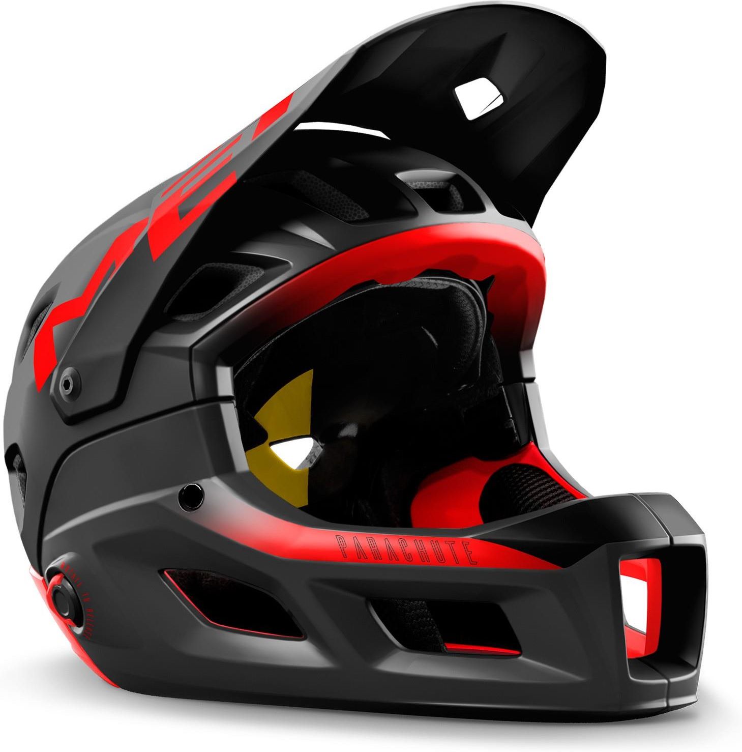 Kask typu FullFace z odpinaną szczęką i systemem MIPS. Stworzony z myślą o ekstremalnych odmianach kolarstwa górskiego. Parachute MCR - MAGNETIC CHINBAR RELEASE - demnotowalna szczęka certyfikat ASTM elastyczny, regulowany daszek wymienne wkładki szczęki (2 rozmiary w zestawie) 21 otworów wentylacyjnych wewnętrzny tunel powietrzny System MIPS system dopasowania BOA zapięcie pod szyją FIDLOCK MAGNETIC rozmiar: S 52-56 cm, M 56-58 cm, L 58-61 cm waga: 840 g (FULLFACE) 455 g (OPENFACE) dla rozmiaru M MIPS - Multi-directional Impact Protection System czyli wielokierunkowy system ochrony przed uderzeniami. Jest to system, który oddziela kask od wewnętrznej wyściółki specjalną dodatkową warstwą umieszczoną na elastycznych zaczepach. System ten zapewnia zmniejszenie sił, jakie działają na mózg rowerzysty podczas upadku. Zadaniem systemu MIPS jest ochrona nie tylko przed uderzeniami pionowymi, ale też skośnymi. Według informacji producenta w ciągu kilku milisekund uderzenia powłoka MIPS przesuwa się o kilka milimetrów.