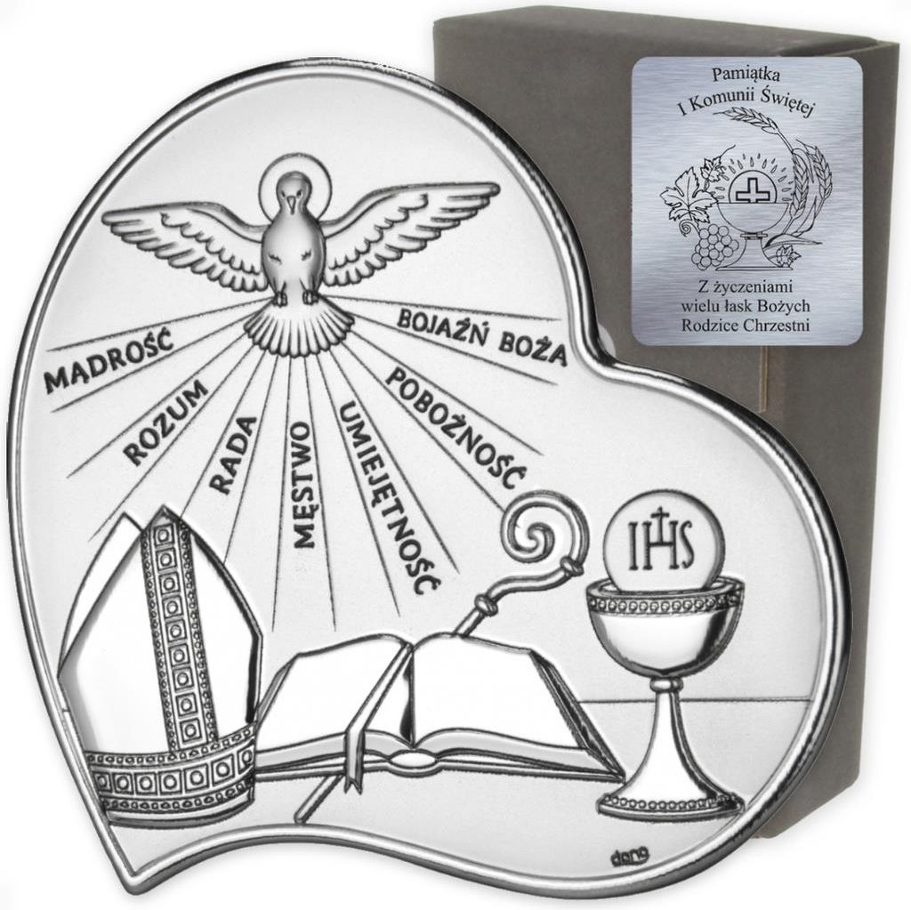 Obrazek srebrny przedstawiający symbole związane z Bierzmowaniem, napisem "MĄDROŚĆ, ROZUM, RADA, MĘSTWO, UMIEJĘTNOŚĆ, POBOŻNOŚĆ, BOJAŹŃ BOŻA" stanowi doskonały prezent z okazji przyjęcia sakramentu Bierzmowania. Umieszczając na nim wygrawerowaną dedykację sprawisz obdarowanego świetną pamiątkę na …