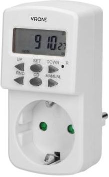 Elektroniczny programator czasowy SCHUKO ORNO Programator czasowy elektronicznyDT-2 VIRONE w wersji SCHUKOwyposażony został w wyświetlacz LCD i służy do ustawiania czasu włączania i wyłączania urządzeń elektrycznych takich jak: oświetlenie, ogrzewacze wody, reklamy itp. Prezentowany model urządzenia wyposażony został w 10 programów czasowych , 7 kombinacji dnia tygodnia, funkcję czasu letniego oraz zimowego, funkcję odliczaniacount down, tryb pracy 12 lub 24 godzinny Do produktu można podłączyć ę urządzenie o maksymalnym obciążeniu do 1800W . Parametry typ: elektroniczny programator czasowy napięcie zasilania: 230V~, 50Hz max. obciążenie: 1800W/8A typ gniazda: 2P+Z standard gniazd: typ SCHUKO wbudowany akumulator: tak typ: cyfrowy ilość programów czasowych: 10 7 kombinacji dnia tygodnia tryb 12 lub 24 godzinny funkcja czasu letniego i zimowego funkcja odliczania: count down montaż: gniazdko sieciowe stopień ochrony: IP20 wymiary: 50 x 100 x 75 mm gwarancja: 24 miesiące
