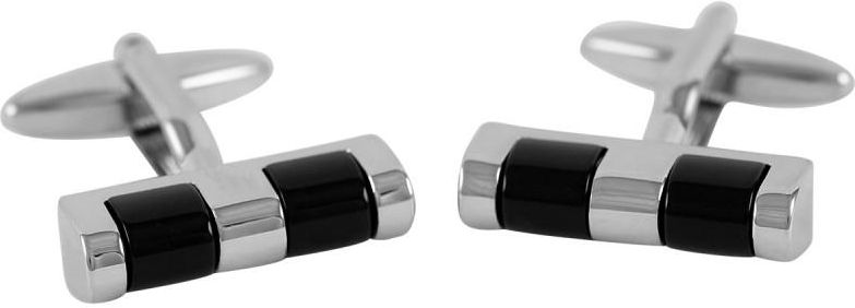 Srebrne podłużne spinki do mankietów z czarnym wypełnieniem w eleganckim czarnym pudełku