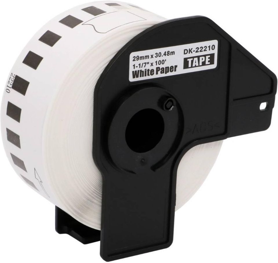 Taśma termiczna DK-22210 do Brother QL 29mmx30,48m Model: DK-22210 Rozmiar: 29mmx30,48m Kolor etykiety: Biały Kolor nadruku: Czarny Rodzaj kleju: Trwały Materiał etykiety: Papier Rodzaj: Taśma ciągła Typ: zamiennik Informacje dodatkowe Papier premium, odporny na zadrapania oraz umiarkowane działanie wody i oleju. Taśma z uchwytem Pasuje do wszystkich drukarkek z serii Brother QL Dostępne rozmiary taśm do Brother QL Model | szerokość x długość DK-22113 (przezroczysta folia) | 62mm x 15,24m DK-22205 | 62mm x 30,48m DK-22210 | 29mm x 30,48m DK-22211 (biała folia) | 29mm 15,24m DK-22212 (biała folia) | 62mm x 15,24m DK-22214 | 12mm x 30,48m DK-22223 | 50mm x 30,48m DK-22225 | 38mm x 30,48m DK-22243 | 102mm x 30,48m DK-22606 | 62mm x 15,24m DK-44205 | 62mm x 30,48m DK-44605 (żółta) | 62mm x 30,48m DK-N55224 | 54mm x 30,48m Dostępne rozmiary etykiet do Brother QL Model | szerokość x długość | ilość etykiet na rolce DK-11201 | 29mm x 90mm | 400 DK-11202 | 62mm x 100mm | 300 DK-11203 | 17mm x 87mm | 300 DK-11204 | 17mm x 54mm | 400 DK-11207 (okrągłe) | ϕ58mm | 100 DK-11208 | 38mm x 90mm | 400 DK-11209 | 29mm x 62mm | 800 DK-11218 (okrągłe) | ϕ24mm | 1000 DK-11219 (okrągłe) | ϕ12mm | 1200 DK-11221 | 23mm x 23mm | 1000 DK-11240 | 102mmx 51mm | 600 DK-11241 | 102mm x 152mm | 200 Kompatybilność QL570, QL700, QL710W, QL800, QL810W, QL1050, QL1050N, QL1060N, QL1060NX, QL1100, QL1100NWB, QL1110, QL1110NWB, QL500, QL500A, QL500BS, QL500BW, QL550, QL560, QL560VP, QL560YX, , QL570VM, QL580, QL580N, QL650CD, QL650TD, , QL710WSP,QL720NW, QL820NWB Etykiety Brother DK wykonane z papieru lub folii wysokiej jakości, odpornego na promieniowanie UV, wilgoć, wysoką i niską temperaturę oraz ścieranie. Drukarki QL korzystają z bezpośredniego druku termicznego, co oznacza, że jedynym materiałem eksploatacyjnym są etykiety termiczne. Wszystkie rolki Brother DK są zamieszczone na specjalnej szpuli, dzięki czemu mamy gwarancję szybkiego i pewnego założenia etykiety do drukarki. Dodatkowo uchwyt ma zakodowaną informację o rodzaju i wielkości etykiet, przez co drukarka i komputer od razu rozpoznają założoną etykietę.