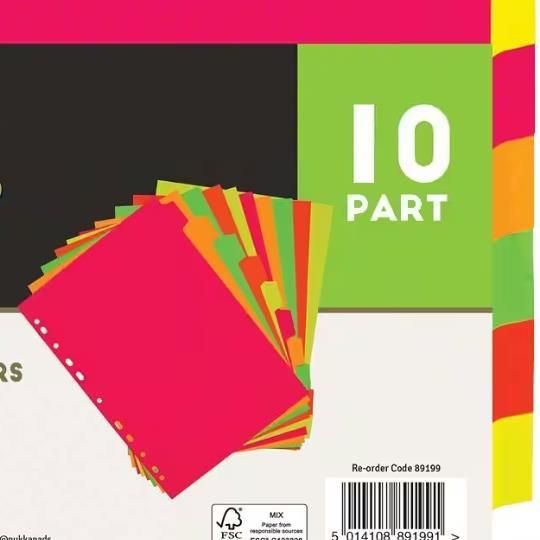 Przekładki do segregatora A4 10 blocz. neon PUKKA Pukka __________________________________________________________________ Przekładki do segregatora w formacie A4. Idealnie sprawdzą się do uporządkowania plików. Wykonane z papieru o gramaturze 160 g/m2. W zestawie 10 przekładek w mixie kolorów. …