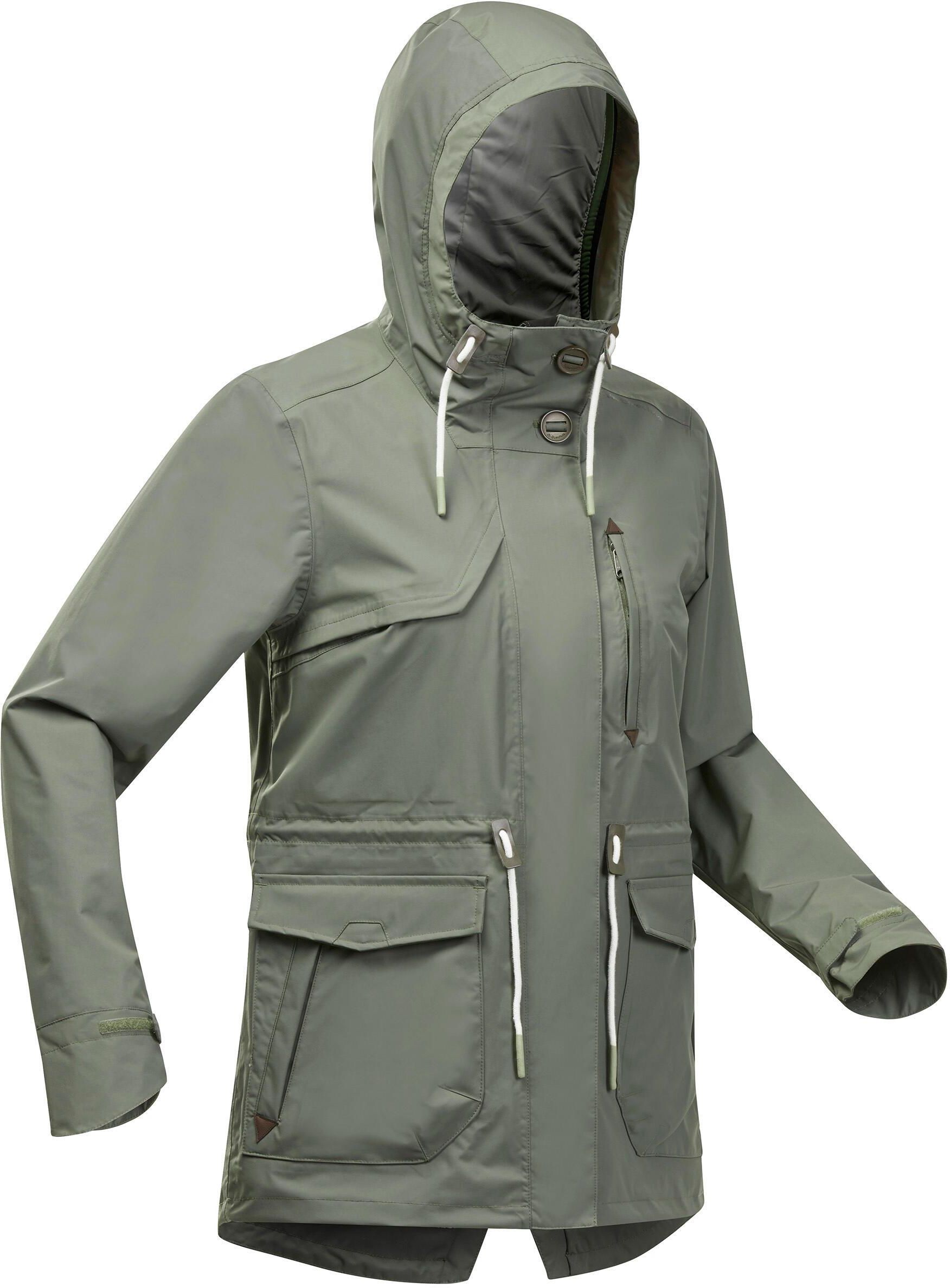 Quechua Kurtka Turystyczna Damska Nh550 Wodoodporna Khaki Zielony Oświęcim