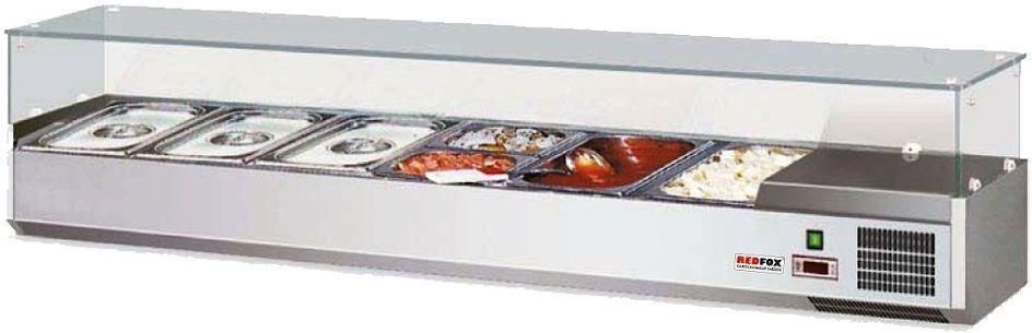 Witrynka chłodnicza 3 GN 1/3 + 1 GN 1/2 marki Redfox. Wykonana ze stali nierdzewnej. Posiada szklaną osłonkę oraz elektroniczne sterowanie. Agregat umieszczony po prawej stronie. Zakres temperatury wynosi od + 2 do + 8 stopni celsjusza. Uwaga: Cena nie obejmuje pojemników GN. Produkt na zamówienie. Czas oczekiwania określany przy składaniu zamówienia.