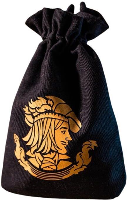 Mieszek na kości - Wiedźmin: Jaskier - Gwiazdy nad Traktem Spoglądaj w niebo. Ten mieszek na kości, inspirowany światem Wiedźmina, przedstawia niemożliwy do pomylenia złoty wizerunek słynnego barda Jaskra, który pewnego razu brał udział w wyprawie na smoka. Zrobiony jest w iście mistrzowskim stylu, z mocnej czarnej bawełny, godnej zahartowanego poety-awanturnika! Zamykany wytrzymałymi sznurkami, może pomieścić do 5 pełnych zestawów kości.