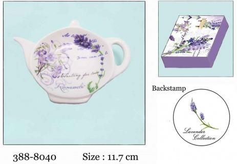 Ozdobna podstawka pod herbatę skapek lawenda ociekacz (15802) Podstawka pod torebkę herbaty zdobiona uroczym wzorem lawendy. Wykonana została z porcelany. Dzięki podstawce, nie musisz się już martwić co zrobić z torebką herbaty po wyciągnięciu jej z kubka. Produkt wygodny w użytkowaniu i prosty w utrzymaniu czystości. Można go swobodnie myć w zmywarce co ułatwi codzienne użytkowanie i zaoszczędzi nasz cenny czas. Produkt oryginalny - dopuszczony do kontaktu z żywnością. Ociekacz zapakowany w ozdobne opakowanie. Wzór: lawenda Produkt 1 x podstawka 1 x ozdobny kartonik Wymiary długość 11,8 cm szerokość 8,5 cm wysokość 2 cm Materiał porcelana Użytkowanie dopuszczone do kontaktu z żywnością do zmywarki