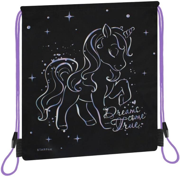 {col/50/} STARPAK Worek na buty UNICORN HOLO Piórnik wykonany jest w czarno - fioletowej kolorystyce we wzór z motywem magicznego jednorożca. Zamykany na sznurek. Zatrzaski przy sznurkach. Wymiary: 38,5 x 33 cm, Wzór: Unicorn Holo {col/50/} {col/50/} {col/50/} Niezawodna jakość Przedstawiamy świetny worek gimnastyczny marki STARPAK, który sprosta nawet najbardziej wymagającym oczekiwaniom zarówno dzieci, jak i rodziców. Dzięki swojej budowie worek będzie idealny także dla młodszych dzieci. Worek jest dość duży, co umożliwia wygodne jego zapakowanie i przenoszenie wszystkich potrzebnych przyborów, które nie zmieszczą się w plecaku. {col/50/} Worek do zadań specjalnych Worek wykonany jest w czarnym kolorze, a na froncie worka znajduje się nadruk z motywem jednorożca. Torebka posiada u góry otwór, który można płynnie otwierać i zamykać przy pomocy sznurków z podwójnym ściągaczem. Aby zamknąć worek, należy ścisnąć sznurki umiejscowione na bokach plecaka. Sznurki jednocześnie zastępują szelki i umożliwiają wygodne noszenie worka. Posiadają zatrzaski. {col/50/} {col/50/} {col/50/} STARPAK STARPAK to ceniona marka artykułów szkolnych, biurowych i prezentowych. Ich misją jest dostarczanie trwałych produktów, które wspierają rozwój dzieci zarówno w szkole, jak i w domu, promując ich kreatywność i twórczość. Stawiają na jakość i trwałość wyrobów, korzystając z sprawdzonych rozwiązań oraz współpracując z najlepszymi partnerami produkcyjnymi. Jako firma społecznie odpowiedzialna, angażują się w pomoc dzieciom poprzez współpracę z fundacjami i stowarzyszeniami. STARPAK wierzy, że każde dziecko zasługuje na szczęśliwe i twórcze dzieciństwo.