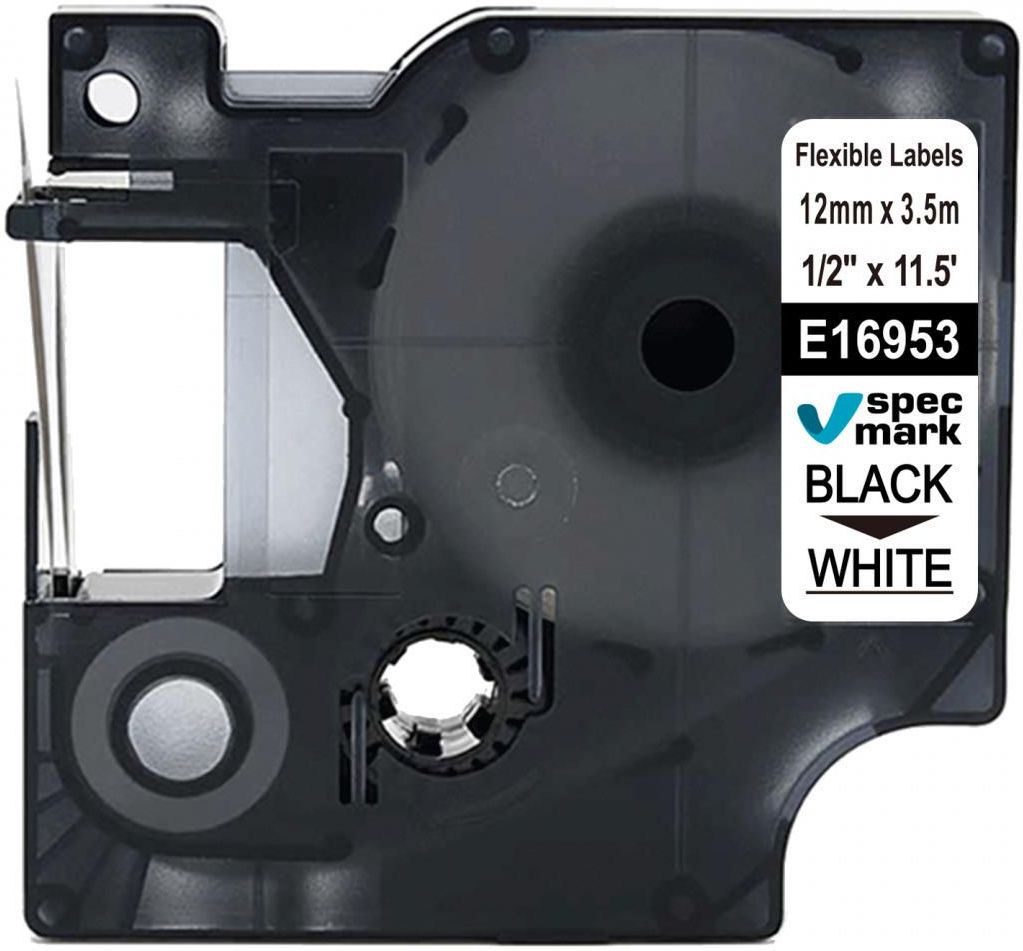 Strefadrukarek.Pl Taśma Dymo D1 16953 Elastyczna 12mm x 3.5m Biała Czarny Nadruk - Zamiennik Oświęcim