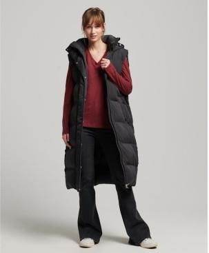 Superdry Dla Kobiet W5011641A Długa Ocieplana Kamizelka Z Kapturem Czarna M Czarny Zwykły Poliester Z Recyklingu Zrówn Oświęcim