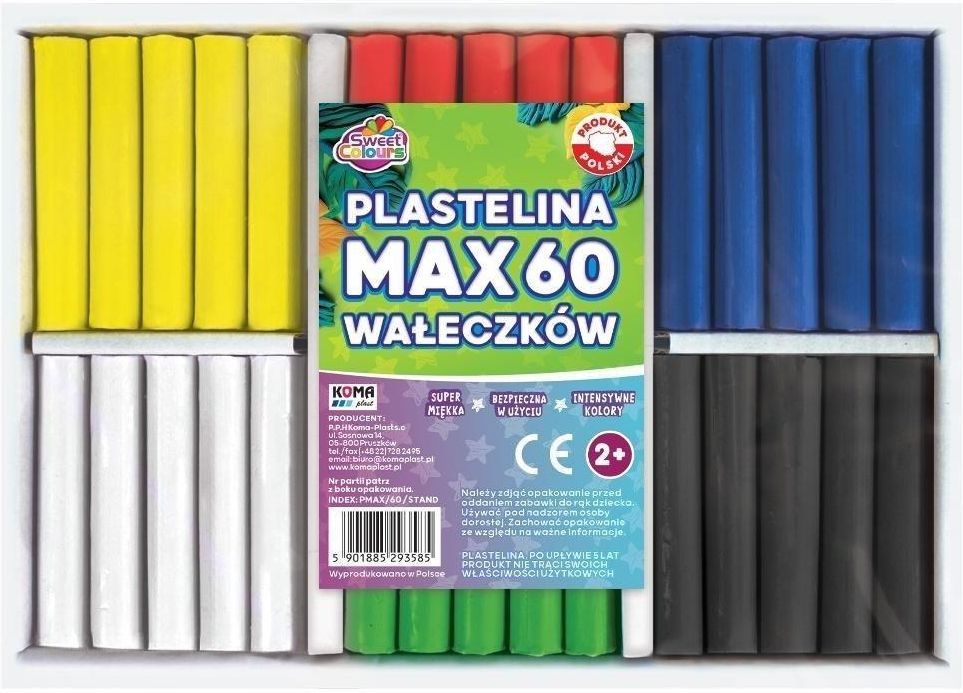 Plastelina max 60 wałeczków sweet colours koma-plast ( 6 kolorów standardowych) EAN: 5901885293585