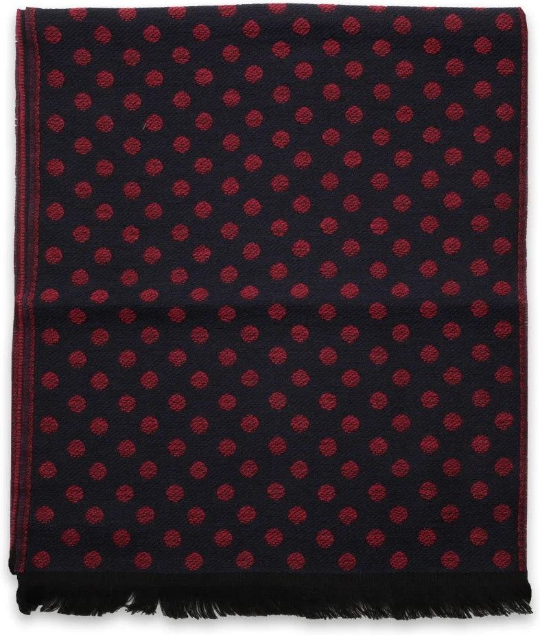 Szal wełniany Kolor: granatowy, czerwony Tkanina: 100% wełna Długość: 190 cm Szerokość: 37 cm Wyprodukowano we Włoszech Elegancki szal w uniwersalnych kolorach. Urozmaici każdą koszulę, kurtkę czy płaszcz. Zakończony krótkimi frędzlami.
