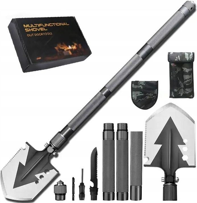 SAPERKA WIELOFUNKCYJNA PROFESJONALNA SAPERKA DLA WYMAGAJĄCYCH DOSTĘPNY KOLOR: GRAFITOWY/STALOWY Kryjąca się w poręcznym pokrowcu saperka to tak naprawdę solidnie wykonany zestaw narzędzi. Posiada wiele zastosowań, które przydadzą się podczas plenerowych wypraw, pracy w domu czy ogrodzie. Po złożeniu całość zajmuje niewiele miejsca, więc będzie idealnym elementem ekwipunku każdego survivalowca. Saperka składana została precyzyjnie zaprojektowana tak, by każdy użytkownik bez problemu mógł wykorzystać, każdą jej funkcję. Wielofunkcyjna saperka to świetny pomysł na upominek dla każdego majsterkowicza, ogrodnika czy fana plenerowych wypraw. ZALETY SAPERKI TAKTYCZNEJ Łopata oraz nożyk zostały wykonane z odpornej na uszkodzenia stali nierdzewnej 3Cr13 Wykonana z jednego, grubego kawałka stali, jest to niezwykle twardy materiał posiadający wysokie właściwości antykorozyjne Głownia posiada regulowany kąt nachylenia od 0° do 180 Dzięki temu saperka może być używana jako łopata, siekierka, kilof, a nawet motyka. Krawędzie łopaty zostały dodatkowo wyposażone w niezbędne elementy, z jednej strony kryje się ostrze, które jak toporek, jest w stanie rąbać drewno, z drugiej znajduje się dwurzędowa piła oraz ostrze do cięcia lin i pasów. Rękojeść wykonana jest z wyjątkowo wytrzymałego stopu aluminium. W razie niebezpieczeństwa może ona pełnić funkcję pałki do samoobrony. Rękojeść składa się z trzech elementów, każdy po 18 centymetrów. Dzięki temu rozwiązaniu możemy dopasować długość uchwytu do wykonywanej przez nas pracy. Dodatkowego komfortu dodają specjalne nacięcia, które zapewniają mocny i stabilny chwyt. Wszystkie elementy dodatkowe można wkręcić i schować w rękojeść, a dzięki uszczelkom typu o-ring całość jest wodoszczelna. Saperka została wyposażona w wielofunkcyjny nożyk. Za pomocą gwintów można go przymocować do elementów rękojeści i używać jako włóczni. Nóż oprócz klasycznego ostrza gładkiego został wyposażony w dwurzędową piłę oraz otwieracz do kapsli. Dodatkowo do saperki dołączono krzesiwo do wzniecania ognia oraz gwizdek ratunkowy / sygnałowy Kolejnym elementem jest zbijak do szyb, który w warunkach plenerowych będzie idealny do rozbijania płytek czy lodu. Saperka oraz wszystkie elementy dodatkowe są zapakowane w wojskowy pokrowiec moro ułatwiający transport. NIEZAWODNA W KAŻDYCH WARUNKACH Jeśli planujesz wyprawę w trudny teren lub masz zamiar nocować pod gołym niebem, ta saperka będzie niezbędnym wyposażeniem Twojego ekwipunku. Jest odporna na wszelkie czynniki atmosferyczne i bardzo wytrzymała, dlatego możesz wykorzystywać ją do najtrudniejszych zadań bez obawy o uszkodzenie. Wykopiesz nią zagłębienie, przetniesz gałęzie, a dołączony nóż możesz wykorzystać do przygotowania potraw i wielu innych zadań. NIEZBĘDNE WYPOSAŻENIE TWOJEGO PLECAKA Saperka pomoże wyjść obronną ręką z ekstremalnych sytuacji. Podczas kompletowania ekwipunku podróżnego liczą się kompaktowe wymiary i mały ciężar bagażu. Jest to szczególnie ważne, jeśli masz zamiar pokonywać spore odległości pieszo. Prezentowana saperka jest lekka i niewielka po złożeniu, jednak pomimo tego zapewnia szerokie możliwości podczas zastosowania jej w terenie. Wyposażono ją w kilka różnych końcówek, z których każda może posłużyć do innego zadania. Jedno akcesorium łączy w sobie wiele niezwykle przydatnych funkcji. DANE TECHNICZNE Długość całkowita: 760 mm Długość głowni: 164 mm Szerokość głowni: 130 mm Waga całkowita: 1000 g Materiał głowni: stal 3Cr13 Materiał rękojeści: stop aluminium Pokrowiec: wytrzymały materiał Elementy dodatkowe: nóż wielofunkcyjny, zbijak do szyb, gwizdek alarmowy, krzesiwo BUDOWA SAPERKI Saperka składa się z stalowej głowni ( części roboczej ) oraz 3 aluminiowych elementów, które można ze sobą łączyć tworząc trzon łopaty, o łącznej długości 76 cm. Długość jednego elementu trzonka wynosi 18 cm, i można je dowolnie łączyć, tworząc saperkę o długości trzonka 38 cm / 54 cm / 76 cm . Elementy, które montujemy razem posiadają uszczelki dzięki czemu woda nie dostanie do ich wnętrz. Każdy z trzech elementów posiada strukturę ułatwiającą trzymanie saperki. Aluminiowe elementy trzonka saperki, po wkręceniu do nich ostrza tworzą rękojeść noża. Saperka zakończona jest zbijakiem do szyb. Dodatkowo posiada krzesiwo oraz gwizdek sygnałowy. ZESTAW SURVIVALOWY Zestaw survivalowy składający się z wielofunkcyjnej saperki, wyposażonej w szereg niezbędnych do przetrwania narzędzi. Saperka jest w pełni składana i rozkładana - w komplecie z praktycznym pokrowcem jej przenoszenie jest bardzo komfortowe. Zestaw formie praktycznej wojskowej saperki Znajdziesz w nim wiele przydatnych narzędzi i przedmiotów, które pomogą Ci przetrwać trudne chwile na łonie natury ( las i góry ). Doskonale sprawdzi się również w klasycznych zastosowaniach turystycznych ( wakacje pod namiotem ).