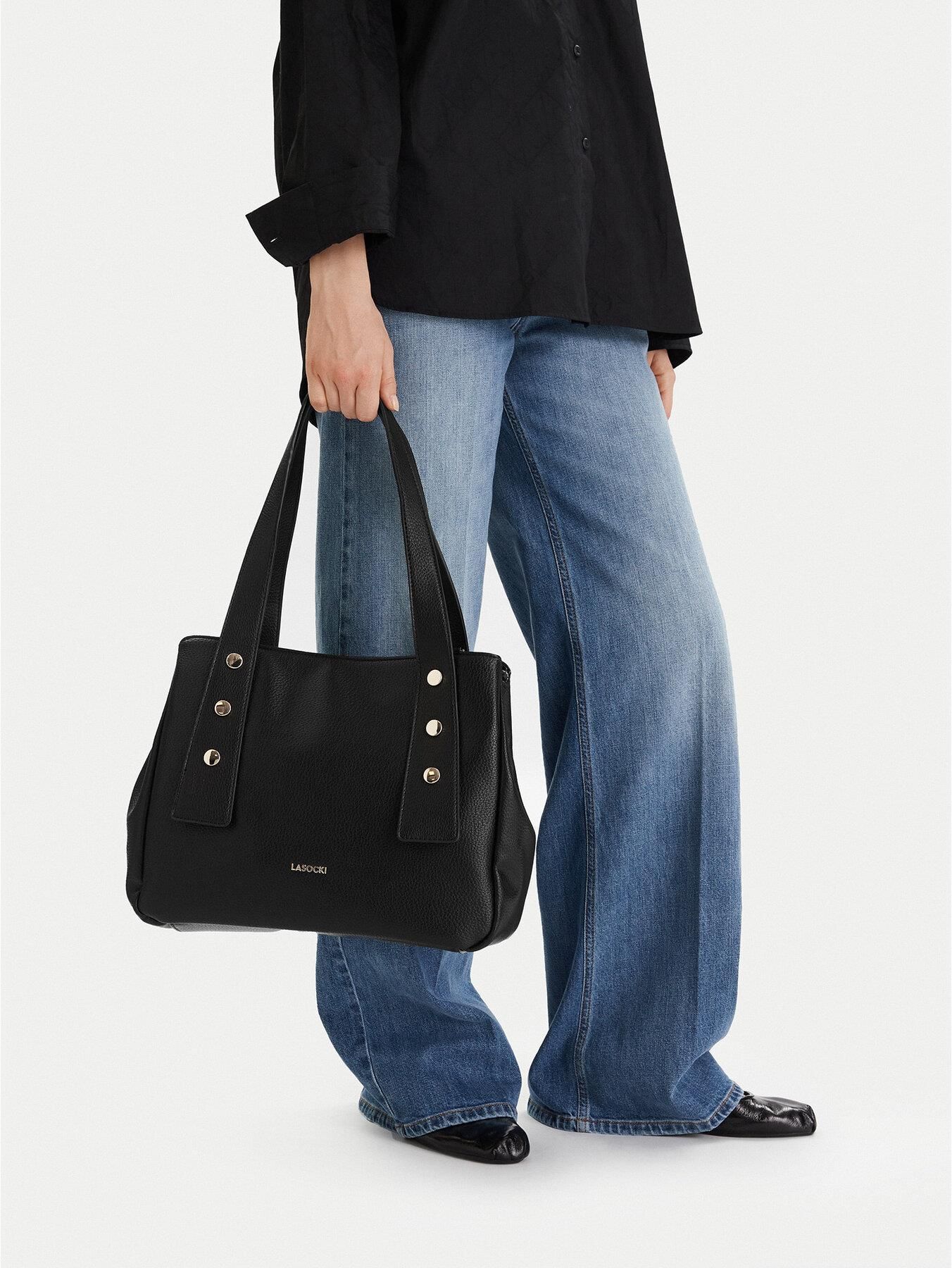 Torebka Lasocki to stylowy dodatek, który łączy funkcjonalność z niepowtarzalnym designem. Wykonana z wysokogatunkowego materiału syntetycznego, jest trwała i łatwa w utrzymaniu czystości, co czyni ją idealnym wyborem na co dzień. Płaskie ćwieki zdobiące powierzchnię nadają jej nowoczesnego i eleganckiego charakteru, który przyciąga wzrok. Torebka została zaprojektowana z myślą o codziennym komforcie – posiada praktyczny, dopinany pasek, dzięki któremu możesz nosić ją na ramieniu, dostosowując do swoich potrzeb. Doskonały wybór dla każdej kobiety, ceniącej styl i wygodę!