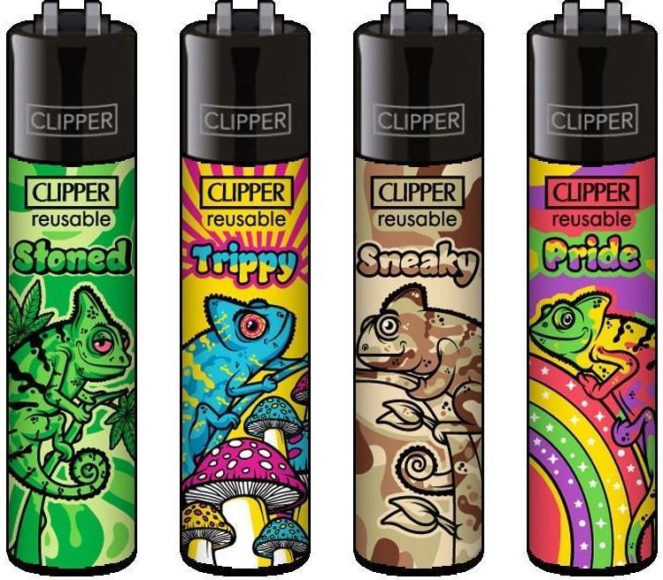 Zapalniczka Clipper wzór CHAMELEON 2 Zapalniczka krzesiwowa [Clipper](https://vaporshop.pl/pl/35-zapalniczki) Large we wzorze CHAMELEON 2. 4 zabawne nadruki do wyboru - idealne, by umilić Ci niejeden wieczór przy joincie! Clippery to [zapalniczki](https://vaporshop.pl/pl/35-zapalniczki), których nie trzeba przedstawiać zwolennikom palenia. Marka już od ponad 40 lat króluje wśród najchętniej wybieranych producentów zapalniczek na świecie. Okrągły kształt obudowy, który świetnie leży w dłoni i niezliczona ilość wzorów do wyboru to znaki rozpoznawalne Clipperów. Zapalniczka posiada wyjmowany ubijak - wystarczy, że pociągniesz iskrownik w górę oraz wymienny kamień. Każdy [Clipper](https://vaporshop.pl/pl/35-zapalniczki) jest wielokrotnie napełniany gazem, 1 ładowanie gazem umożliwia aż 3000 zapłonów. Ponadto, Clippera możesz też użyć jako korka z do butelki z wina lub piwa - sprawdź jak to działna imprezie! Zapalniczka Clipper Large CHAMELEON 2 - 4 motywy do wyboru.