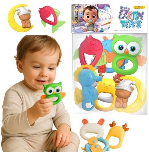 ZESTAW GRZECHOTEK I GRYZAKÓW GRZECHOTKA GRYZAK KOLOROWA SENSORYCZNA Sensoryczny zestaw grzechotek o zabawnych kształtach to wspaniała zabaweczka dla malucha! Grzechotki i gryzaczki w zestawie Miękkie, gumowe elementy pełnią funkcję gryzaka - wykonane są z nietoksycznego, bezwonnego silikonu. …