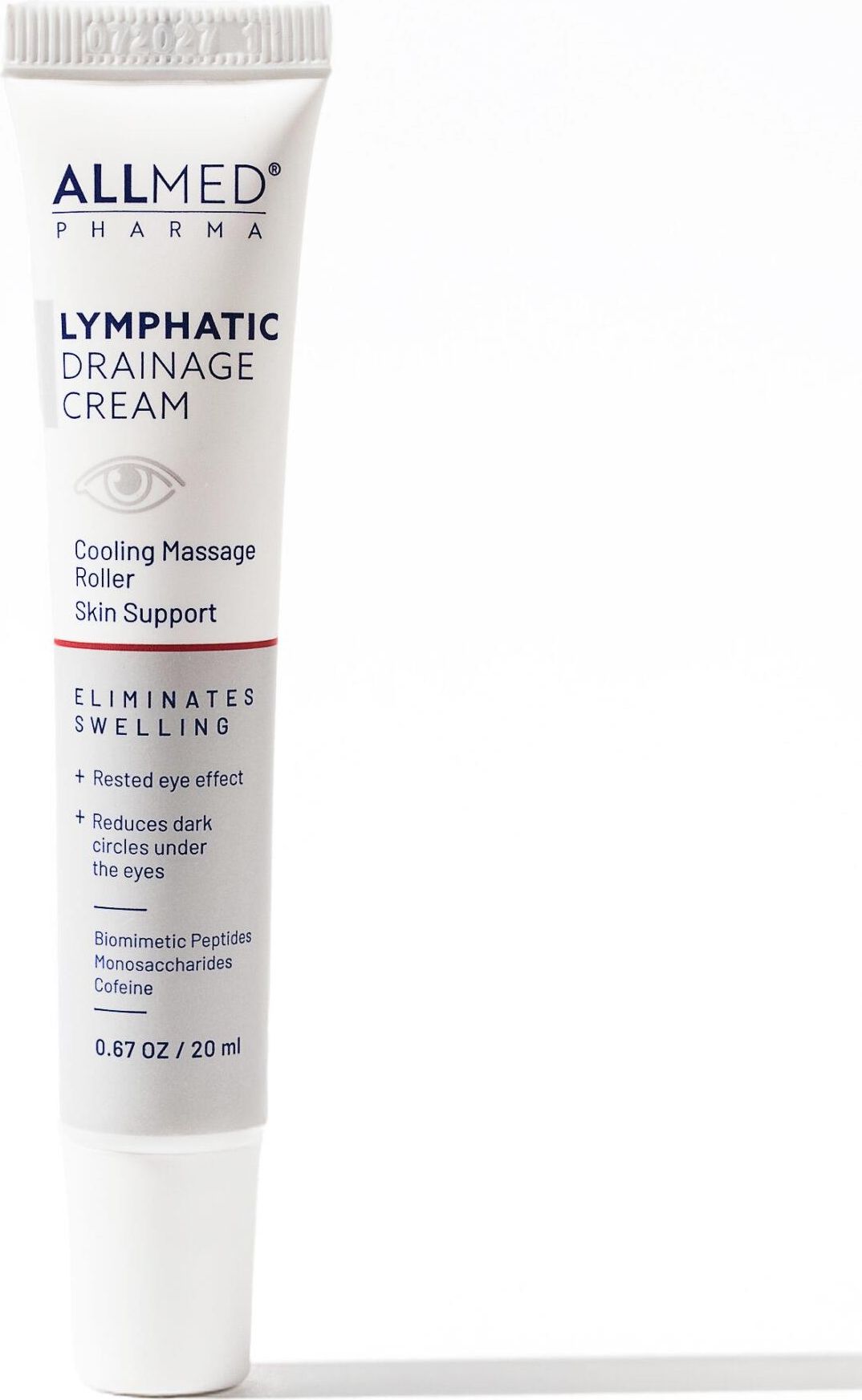 Lymphatic Drainage Cream od Allmed Pharma Lymphatic Drainage Cream to lekki krem pielęgnacyjny przeznaczony do delikatnej skóry wokół oczu. Zawiera starannie dobrane składniki, które pomagają poprawić wygląd skóry, nadając jej wypoczęty i promienny wygląd. Formuła kremu została opracowana tak, aby wspierać codzienną pielęgnację okolic oczu – zapewnia uczucie nawilżenia, wygładzenia i komfortu. Krem dobrze się wchłania i może być stosowany również pod makijaż, nie pozostawiając uczucia lepkości. Składniki aktywne Kofeina – znana z właściwości odświeżających i poprawiających wygląd skóry. Peptydy biomimetyczne – pomagają zachować elastyczność i gładkość skóry. Ekstrakt z ruszczyka i kasztanowca – nadają skórze bardziej wypoczęty wygląd. Kwas hialuronowy – intensywnie nawilża i wygładza. Witaminy C i E – wspierają naturalny blask i ochronę skóry przed czynnikami zewnętrznymi. Efekt pielęgnacyjny Skóra wygląda na bardziej wypoczętą i gładką Poprawione nawilżenie i komfort skóry Delikatne rozświetlenie okolic oczu Sposób użycia Po dokładnym oczyszczeniu skóry nanieś niewielką ilość kremu za pomocą roll-ona. Wykonuj delikatne ruchy wokół oczu, lekko naciskając tubę, aby dozować produkt. Stosuj rano i wieczorem jako element codziennej pielęgnacji. Dla kogo Dla osób poszukujących kremu pielęgnacyjnego do okolic oczu Dla skóry zmęczonej, wymagającej odświeżenia Odpowiedni do codziennego stosowania