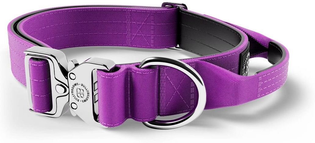 4cm Combat® Collar With Handle PLATINUM BULLYBILLOWS obroża dla psa z uchwytem fioletowa Obroża bojowa BullyBillows jest wyposażona w potrójnie szyty nylon, bezpieczną 6-milimetrową pętlę D ze stali nierdzewnej oraz specjalnie wykonany klips do szybkiego odpinania i zapinania. Aby zapewnić …