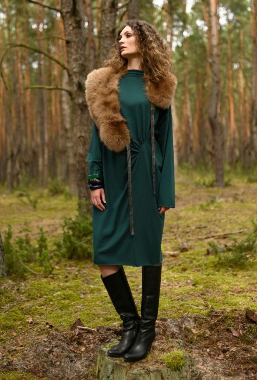KOLOR: ZIELONY Bawełna 94%, elastan 6%. Elastyczna dzianina bawełniana. GRAMATURA: 150 G/M2 Sukienka o swobodnym kroju z długim rękawem, uszyta z miękkiej i elastycznej dzianiny. Asymetryczne marszczenie z przodu subtelnie modeluje sylwetkę, dodając całości nowoczesnego charakteru. Sukienka sprawdzi się zarówno w codziennych, jak i bardziej formalnych stylizacjach. Zaprojektowana i uszyta w Polsce. • delikatne marszczenie z przodu, • długi rękaw, • długość przed kolano, • modelka ma 177 cm wzrostu i nosi rozmiar M. Wymiary