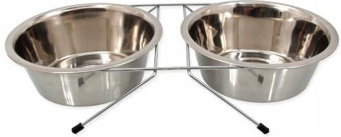 Dog Fantasy metalowe miski Dog Fantasy na stojaku dla psaKomplet dwóch metalowych misek na stojaku dla psa, łatwych do czyszczenia, ponieważ zostały wykonane z bardzo wysokiej jakości, nierdzewnej stali, zapobiegającej rozwojowi drobnoustrojów, które nadają się do kontaktu z każdym rodzajem …