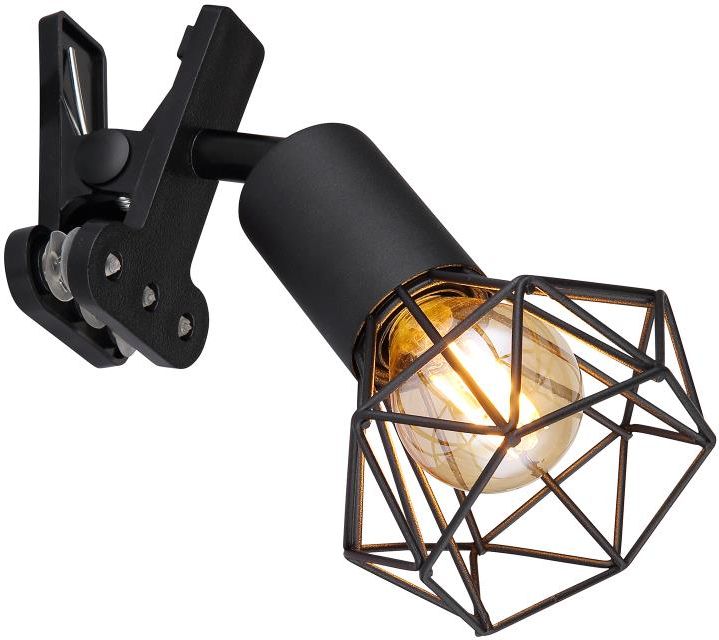 Ten wspaniały reflektor klipsowy inspiruje funkcjonalnością. Do czarnego zacisku przymocowana jest oprawka E14 z kształtnym kloszem z czarnej metalowej siatki. Zastosowane gniazdo E14 umożliwia dowolne dobranie żródła światła przez co samodzielnie można dostosować intensywność i barwę światła . ( …