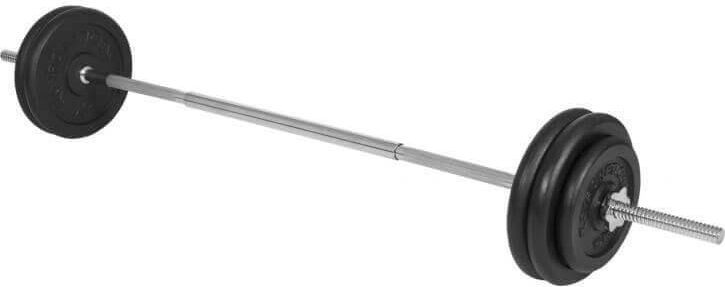 Sztanga prosta 26 kg 160 cm 25 mm Gry prosty skręcany + obciążenia Waga sztangi: 26 kg Gryf prosty 164 cm, 6 kg, 25 mm powierzchnia na obciążenia: 30,5 cm z każdej strony 20 kg obciążeń żeliwnych 2 x 10 kg 2 gwintowane zaciski w zestawie Dla początkujących i średnio-zaawansowanych W trakcie treningu ze sztangą i samym gryfem pracują mięśnie całego naszego ciała. W zależności od rodzajućwiczeń możemy mocniej aktywizować mięśnie górnej lub dolnej części ciała,brzucha, pleców, ramion i nóg. Trening ze sztangą to doskonały sposób na poprawę naszej sylwetki iogólnej wydolności, a także redukcji tkanki tłuszczowej. Dobór konfiguracji obciążeń sprawi, że zestaw ten znajdzie uznanie zarównowśród osób rozpoczynających trening, jak również wśródśrednio-zaawansowanych. Zastosowanie budowa masy mięśniowej wzmocnienie i wyrzeźbienie bardzo wielu grup mięśniowych redukcja tkanki tłuszczowej poprawa kondycji zwiększenie elastyczności stawów