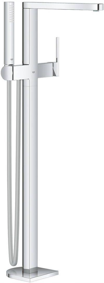 Grohe Plus Bateria wannowa wolnostojąca chrom 23846003 Bateria wannowa wolnostojąca Grohe Plus 23846003 to eleganckie połączenie nowoczesnego designu z funkcjonalnością. Wykonana z wysokiej jakości materiałów i wykończona powłoką chromowaną Grohe StarLight, zachwyca nie tylko swoim wyglądem, ale także trwałością. Dzięki technologiom GROHE SilkMove i Teflon, korzystanie z tej baterii jest niezwykle płynne i wygodne. Regulacja parametrów strumienia jest intuicyjna i błyskawiczna, co sprawia, że codzienne użytkowanie staje się przyjemnością. Co więcej, gwarancja wieloletniego lśniącego połysku powierzchni armatury zapewnia, że bateria będzie prezentować się doskonale nawet po długotrwałym użytkowaniu. Innowacyjna technologia EcoJoy sprawia, że zużycie wody jest znacząco redukowane, co przekłada się na oszczędność zasobów naturalnych i niższe rachunki. Dodatkowo, perlatory umieszczone w wylewce armatury sprawiają, że strumień wody wydaje się obfity, choć faktycznie zużycie jest minimalne. Dzięki zaawansowanemu procesowi galwanizacji, bateria Grohe Plus jest niezwykle odporna na zarysowania, zabrudzenia i matowienie. Niezmiennie zachowuje swój pierwotny wygląd, przez co stanowi trwałą ozdobę każdej łazienki. Wolnostojąca bateria wannowa Grohe Plus 23846003 to nie tylko estetyczny element wystroju łazienki, ale przede wszystkim praktyczne i ekologiczne rozwiązanie, które zapewnia komfort użytkowania przez wiele lat. Cechy produktu do montażu z elementem podtynkowym (zamawiany osobno): 45 984 001 element montażowy zamawiany osobno GROHE SilkMove głowica ceramiczna 35 mm z ogranicznikiem temperatury GROHE Long-Life Shine wykończenie chromowane przełącznik: wanna/prysznic wylewka ze strumieniem laminarnym wysięg 282 mm zintegrowany zawór zwrotny w wyjściu prysznica 1/2" z zamocowaniem prysznica słuchawka prysznicowa Euphoria Cube 6,6 l/min Silverflex wąż prysznicowy 1250 mm (28 362) zabezpieczenie przed przepływem zwrotnym min. rekomendowane ciśnienie 1,0 bar