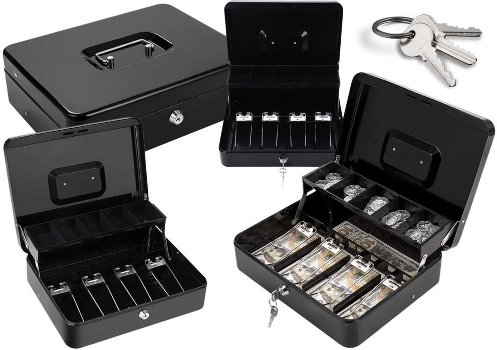Kasetka Na Banknoty i Monety Na Kluczyk Metalowa Czarna Trwała i Praktyczna Kasetka Na Pieniądze Metalowa kasetka to solidne i bezpieczne rozwiązanie do przechowywania banknotów i monet. Zaprojektowana z myślą o maksymalnej organizacji gotówki, kasetka oferuje funkcjonalne przechowywanie w przestronnych komorach. Wykonana z walcowanej blachy stalowej, zapewnia wysoką odporność na uszkodzenia, gwarantując bezpieczeństwo przechowywanych pieniędzy oraz innych wartościowych przedmiotów. ✅ Zaletą Kasetki Jest: Bezpieczeństwo - Zamek na kluczyk w dwóch pozycjach zapewnia wysoki poziom zabezpieczenia, chroniąc przechowywane pieniądze przed dostępem osób niepowołanych. Do zestawu dołączone są dwa kluczyki, co umożliwia korzystanie z kasetki przez kilka osób lub zachowanie zapasowego klucza. ✔️ Funkcjonalność i Organizacja - Kasetka wyposażona jest w 5 przegród na bilon oraz 4 metalowe dociski, które utrzymują banknoty w porządku i zapobiegają ich przesuwaniu, zapewniając wygodę i organizację przechowywania gotówki. ✔️ Kompaktowe Wymiary - Z wymiarami 300 mm x 240 mm x 90 mm, kasetka jest wystarczająco przestronna, aby pomieścić dużą ilość gotówki, ale jednocześnie kompaktowa, co pozwala na jej łatwe przechowywanie nawet w mniejszych przestrzeniach, takich jak targi, małe sklepy, parkingi, gabinetach lekarskich czy innych punktach usługowych. ✔️ Ergonomiczny Design - Kasetka została zaprojektowana z myślą o wygodnym użytkowaniu - metalowy uchwyt ułatwia jej transport, zapewniając wygodę i bezpieczeństwo w transporcie gotówki czy innych przedmiotów. ✔️ Wielofunkcyjność - Oprócz gotówki, kasetka świetnie nadaje się do przechowywania innych drobnych wartościowych przedmiotów, takich jak biżuteria, dokumenty czy drobne elektroniki, które wymagają ochrony. ✅ Specyfikacja: Materiał: Walcowana blacha stalowa, kolor czarny Wymiary: 30 cm (szer.) x 24 cm (gł.) x 9 cm (wys.) Liczba przegród: 5 przegród na bilon i 4 metalowe dociski na banknoty Zamek: Dwupozycyjny zamek na kluczyk (w zestawie 2 kluczyki) Certyfikat: CE - produkt spełnia normy bezpieczeństwa i jakości Zastosowanie: Doskonała do przechowywania gotówki, monet, dokumentów, biżuterii, elektroniki i innych drobnych wartościowych przedmiotów. ✅ Dlaczego Warto Wybrać Tę Kasetkę? Bezpieczne przechowywanie gotówki - Zamek na kluczyk i metalowa konstrukcja gwarantują, że Twoje pieniądze i cenne przedmioty będą odpowiednio zabezpieczone przed kradzieżą. ✔️ Poręczność i kompaktowość - Wygodne wymiary umożliwiają łatwe przechowywanie kasetki w różnych przestrzeniach, a metalowy uchwyt ułatwia jej transport. ✔️ Funkcjonalność - Dzięki przegródkom na bilon i dociskom na banknoty, kasetka pozwala na łatwe przechowywanie gotówki, pomagając utrzymać porządek. ✔️ Wielofunkcyjność - Oprócz przechowywania gotówki, kasetka świetnie nadaje się do ochrony innych cennych przedmiotów, takich jak dokumenty czy biżuteria. Kasetka na banknoty i monety to idealne i bezpieczne rozwiązanie do przechowywania gotówki w każdym punkcie usługowym. Dzięki przegródkom na bilon i dzięki dociskom do banknotów, zapewnia organizację gotówki, a metalowa konstrukcja chroni ją przed kradzieżą. Kasetka jest kompaktowa, poręczna i wielofunkcyjna, co sprawia, że jest to doskonały wybór do biur, targów, sklepów czy gabinetów lekarskich.
