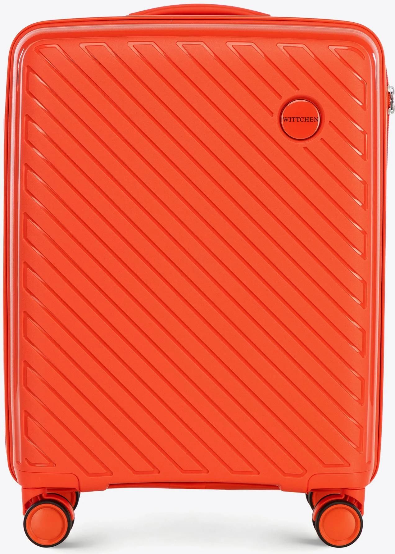Walizka kabinowa z zamkiem szyfrowym – elegancja i bezpieczeństwo w podróży Kabinowa walizka WITTCHEN z kolekcji Raya Line to elegancka propozycja dla osób ceniących styl i funkcjonalność w podróży. Wykonana z lekkiego i elastycznego polipropylenu, łączy nowoczesny design z praktycznymi rozwiązaniami. Wyposażona w 4 podwójne kółka, teleskopową rączkę i wewnętrzny zamek szyfrowy, gwarantuje wygodę oraz bezpieczeństwo Twojego bagażu. Dla kogo? Jeśli szukasz lekkiej i małej walizki, która pomieści wszystko, czego potrzebujesz na weekendowy wypad czy podróż służbową, ten model będzie idealnym wyborem. Nasza rada: Zestaw ją z dużą i średnią walizką z tej samej kolekcji – zyskasz kompletny, stylowy zestaw podróżny. Kluczowe cechy: Materiał: Walizka została wykonana z lekkiego i elastycznego polipropylenu pochodzącego z recyklingu. Zorganizowane wnętrze: Dwie komory — jedna z regulowanymi pasami utrzymującymi zawartość na miejscu, druga z kieszenią z siatki na suwak — ułatwią zachowanie porządku i szybki dostęp do drobiazgów. Bezpieczeństwo: Wewnętrzny zamek szyfrowy skutecznie chroni zawartość walizki przed nieautoryzowanym dostępem. Design: Ukośne tłoczenia oraz okrągłe logo nadają walizce subtelną elegancję. Plastikowe elementy, w tym kółka i uchwyt, perfekcyjnie współgrają kolorystycznie z korpusem, podkreślając jej spójny design. Skład: 100% polipropylen; podszewka: 100% poliester. Wygodne i funkcjonalne rozwiązania: Mobilność: Cztery podwójne kółka o pełnym zakresie obrotu 360° zapewniają stabilność i płynne prowadzenie. Teleskopowa rączka: Wysuwana, wykonana ze stali w srebrnym odcieniu, z eleganckim logowaniem. Uchwyt: Ergonomiczna rączka do przenoszenia, ozdobiona logowaniem WITTCHEN, gwarantuje wygodę i styl. Wybierz walizkę kabinową Raya Line i podróżuj z klasą – niezależnie od celu podróży.Podane wymiary obejmują również elementy wystające, takie jak rączki czy kółka. Wymiary są przybliżone i mogą się różnić +/- 5%.