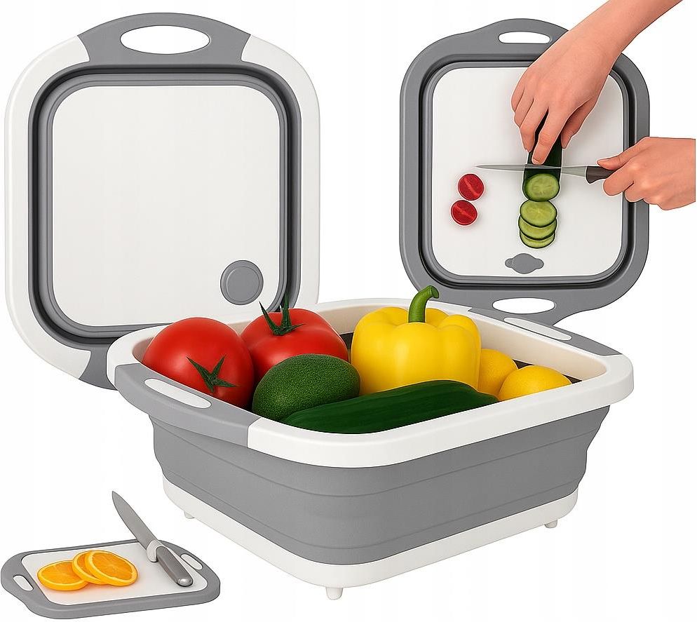 • Miska Składana Silikonowa Deska TSG-454 Do Krojenia Szara 6L Przenośna 3w1
