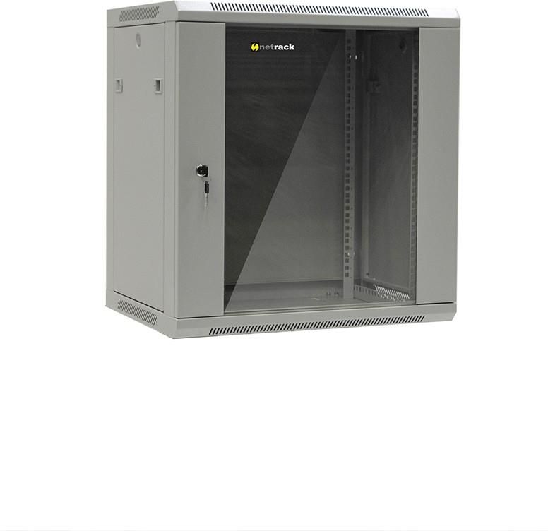 Szafa wisząca RACK 19" 12U, 450mm, Netrack F-Line, szara, drzwi szklane, otwierane boki Szafy rack wiszące - profesjonalne rozwiązanie do instalacji sieci komputerowych. Uporządkuj i zabezpiecz swoją sieć komputerową w domu lub w firmie. Rack 19” najbardziej uniwersalny system do instalacji …