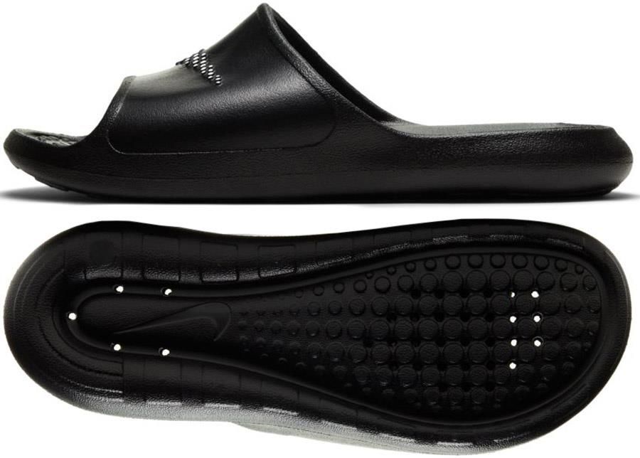 Klapki Nike Victori One Shower Slide W CZ7836-001 Właściwości: klapki Nike przeznaczone dla kobiet to idealna propozycja na ciepłe dni, czy na basen wyprofilowana wewnętrzna część ze specjalnymi wypustkami szeroki pasek podeszwa środkowa z miękkiej pianki zapewnia amortyzację przyczepna podeszwa zewnętrzna Materiał: syntetyczny Kolor: czarny