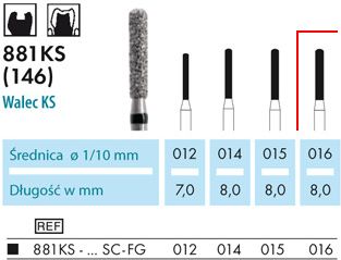 Legenda: Uziarnienie wierteł diamentowych: M bez pierścienia średni 107-126 µm ISO 524 SC Pierścień czarny wstępnie zgrubny 181 µm ISO 544 C Pierścień zielony zgrubny 151 µm ISO 534 F Pierścień czerwony drobny 40 µm ISO 514 SF Pierścień żółty bardzo drobny 20 µm ISO 504 UF Pierścień biały ultradrobny 15 µm ISO 494 FG – turbina FGL i FGXL – turbina przedłużona FGM – mikroturbina RA – kątnica RAL – przedłużona kątnica HP – prostnica