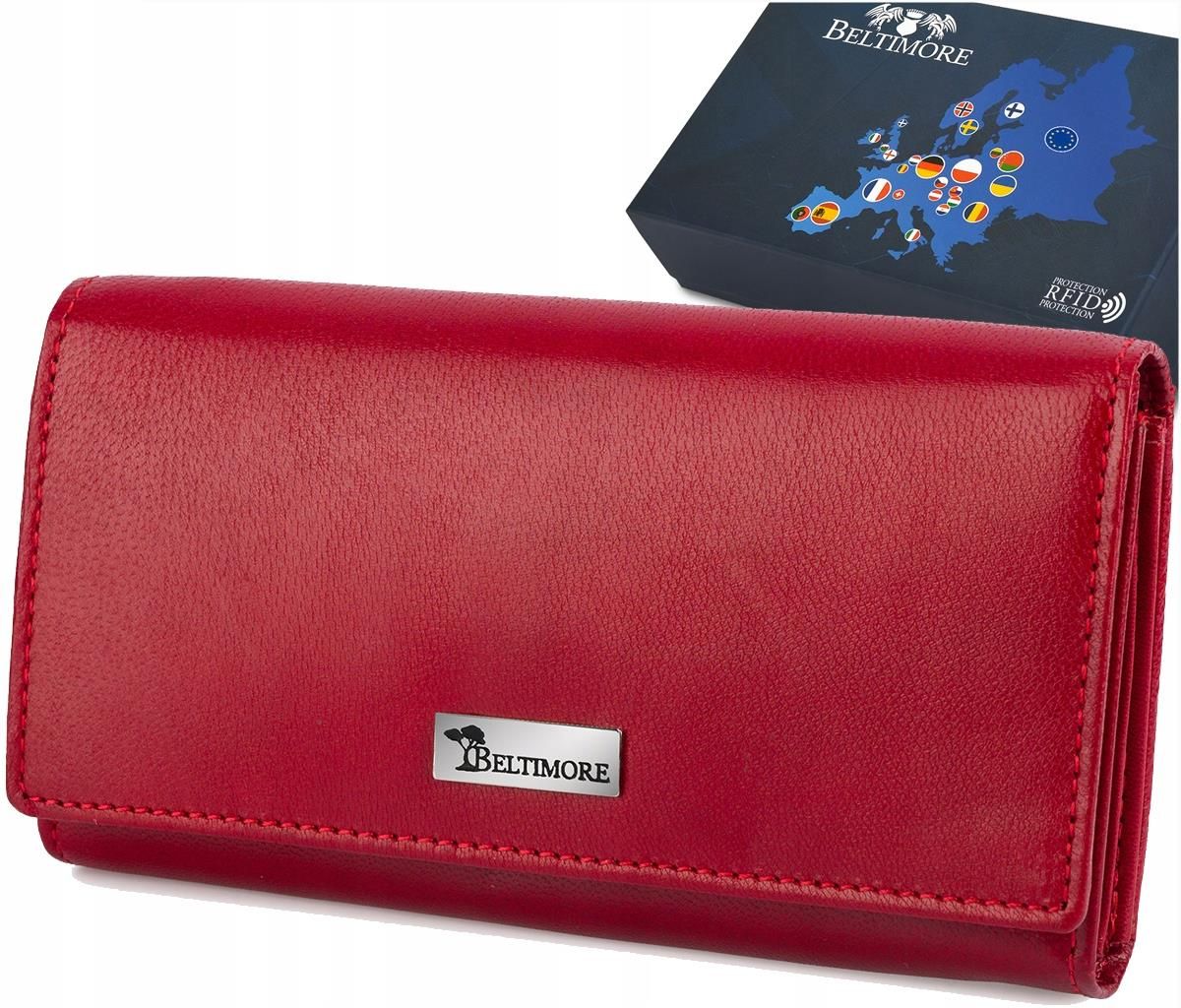 Portfel skórzany damski RFiD skóra na karty klasyk duży czerwony Beltimore Otwock