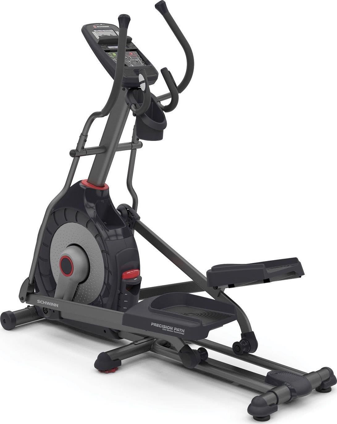 Rower eliptyczny Programowany Schwinn 430i to propozycja urządzenia z przednim kołem amerykańskiej firmy Schwinn, będącej częścią korporacji Nautilus, czyli jednego z liderów rynku fitness w USA. Rower eliptyczny posiada między innymi 22 zróżnicowane programy treningowe, aż 20 poziomów oporu magnetycznego, 10 stopniową i 6 poziomową ręczną regulację nachylenia oraz elegancki i stylowy wygląd. Rower eliptyczny został wyposażony także we wszelkie niezbędne akcesoria oraz dodatki, które uczynią trening przyjemnym i komfortowym, w tym głośniki z możliwością podłączenia Mp3, port USB z możliwością ładowania urządzeń, tackę na akcesoria, uchwyt na bidon, wentylator z 3 poziomami regulacji natężenia nawiewu, a także kółka transportowe do wygodnego przemieszczania sprzętu. Marka Schwinn dostępna jest na rynku już od ponad 50 lat. Zasłynęła jako producent przede wszystkim różnego rodzaju rowerów treningowych. Obecnie w ofercie marki znajdują się wszelkiego typu sprzęty fitness cardio do użytku domowego. Marka zarówno technologicznie jak i pod względem designu reprezentuje najwyższe standardy. Tym samym daje to użytkownikowi możliwość zaawansowanego monitorowania danych treningowych oraz planowania nowych celów. DANE TECHNICZNE: Wyświetlacz DualTrack™: 2 wysokiej rozdzielczości wyświetlacze LCD pozwalają na śledzenie i kontrolowanie dwóch niezależnych parametrów treningu. Kontrast STN negatywowy gwarantuje pełną widoczność Programy treningowe: 22 – w tym treningi oparte o puls docelowy, predefiniowane, indywidualne, fitness test oraz typu szybki start Liczba profili użytkowników: 2 Regulacja oporu: 20 poziomów oporu magnetycznego zarządzane z poziomu konsoli Funkcje: czas, dystans, prędkość, kalorie, puls, opór, RPM Waga koła zamachowego: 9 kg (Systemie Hybrid HIIT) Nachylenie: 10 stopniowa regulacja manualna (6 poziomów ustawienia rampy) Płozy: szerokie i antypoślizgowe Odległość między płozami (czynnik q): 4 cm Wymiary płozy (wewnętrzne): 22 x 34 cm (szer. x dł.) Wymiary płozy (zewnętrzne): 27 x 46 cm (szer. x dł.) Długość kroku: 51 cm Precision Path™ Stride Maksymalna wysokość pedałów (przy pełnym nachyleniu): 66,1 cm Uchwyty: wyprofilowane, statyczne i ruchome Konsola z miejscem na tablet Puls: pomiar za pośrednictwem czujników umieszczonych na uchwytach Klawisze szybkiego dostępu w zasięgu ręki: umożliwiające wygodną zmianę poziomu oporu (10 opcji) w trakcie treningu Wentylator: 3 poziomy regulacji natężenia nawiewu Dodatkowe wyposażenie: port USB z możliwością transferu danych i ładowania urządzeń, kółka transportowe, tacka na akcesoria, uchwyt na bidon, głośniki z wejściem Mp3, zasilacz sieciowy Wymiary sprzętu: 178,1 x 71,5 x 160,5 cm (dł. x szer. x wys.) Wymiar opakowania: 130 x 86,4 x 56 cm (dł. x szer. x wys.) Minimalna wysokość sufitu:wysokość użytkownika + 66,1 cm (najwyższe położenie płozy) + kilka centymetrów zapasu gwarantujących komfortowe warunki treningowe Waga produktu: 74,5 kg Maksymalna waga użytkownika: 136 kg Przeznaczenie: użytek domowy Gwarancja: 2 lata