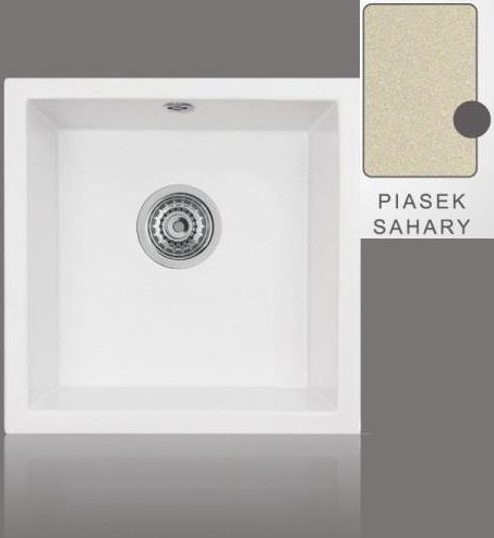 Zlewozmywak granitowy firmy ŚMIGIELSKI ROMA 46 SAHARA (podwieszany) wymiary zlewozmywaka: 460 x 460 x 170 do szafki prostej minimum 500 mm ROMA 46 jest to podwieszany pod blatem zlewozmywak granitowy z dużymi odpływem OKG o średnicy 3,5". Zlewozmywak produkoway dla firmy ŚMIGIELSKI TECHNIKA KUCHENNA. Zlewozmywak jest do montażu do szafki prostej. W komplecie zlewozmywaka jest korek automatyczny, odpływ, syfon oraz elementy montażowe (zaczepy). Właściwości zlewozmywaka Zlewozmywak podwieszany pod blatem. W komplecie: korek automatyczny, odpływ, syfon z podejściem do zmywarki oszczędzający miejsce w szafce oraz elementy montażowe (zaczepy). Duży odpływ o rozmiarze 3,5". Doskonały kompozyt Wysoka odporność na temperatury Bardzo drobne ziarno – dzięki czemu najlepsza gładkość w klasie i łatwość w utrzymaniu czystości. Bardzo wysoka twardość w grupie kompozytów – odporność na zarysowania. Doskonała gładkość daje 100% odporność na działanie silnych barwników. Najwyższa twardość w grupie kompozytów – odporność na zarysowania. Możliwość dokupienia akcesoriów dodatkowych: baterii dopasowanej kolorystycznie, pasty do czyszczenia. KOLORYSTYKA Zlewozmywaki granitowe ŚMIGIESLKI występują w 5 kolorach: BIAŁY MLECZNY, JASNY BEŻ, CZARNY METALIK, PIASEK SAHARY, TYTAN. Materiał z jakiego są zrobione zlewozmywaki to kompozyt - granit (80% piasku granitowego i żywicy poliestrowej). RYSUNEK TECHNICZNY