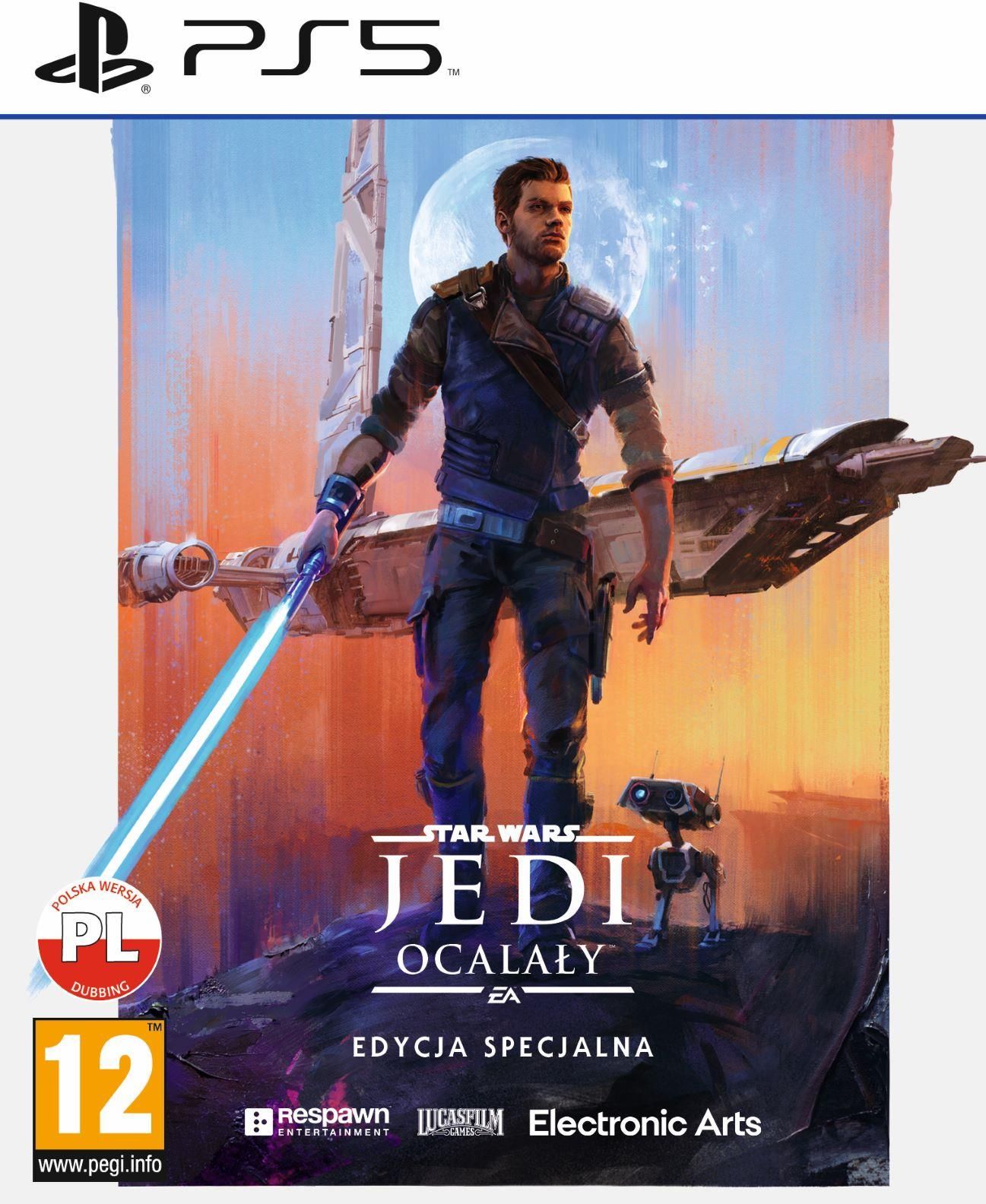 Star Wars Jedi Ocalały rozpoczyna się pięć lat po wydarzeniach z Jedi: Fallen Order. Cal musi pozostać o krok przed nieustannym pościgiem Imperium, gdy zaczyna odczuwać ciężar bycia jednym z ostatnich Jedi w galaktyce.       Poznaj dalszy ciąg historii Cala Kestisa w Star Wars Jedi: Ocalały – przygodowej grze akcji z perspektywy trzeciej osoby autorstwa Respawn Entertainment, stworzonej we współpracy z Lucasfilm Games. Akcja tego tytułu dla jednego gracza z bogatą warstwą narracyjną zaczyna się pięć lat po wydarzeniach przedstawionych w Star Wars Jedi: Upadły zakon™ i ukazuje desperacką walkę Cala w galaktyce, którą coraz bardziej spowija mrok. Zepchnięty przez Imperium na jej rubieże bohater musi stawić czoła starym i nowym zagrożeniom. Jako jeden z ostatnich rycerzy Jedi Cal musi uporać się z najtrudniejszym okresem w historii galaktyki, ale jak daleko będzie w stanie się posunąć, aby chronić siebie, swoją załogę i dziedzictwo Zakonu Jedi? Kontynuuj podróż Cala. Cal nie jest już padawanem i wyrósł na potężnego, niezależnego rycerza Jedi. Ze względu na wspomnienia, które nosi w sobie, i ciążące na nim oczekiwania całego Zakonu jego krucjata przeciw Imperium stała się jeszcze bardziej niebezpieczna. Zbliżają się mroczne czasy – otoczony przez nowych i znanych już wrogów Cal będzie musiał zdecydować, jak daleko chce się posunąć, aby ocalić najbliższych. Wykrocz poza swoje szkolenie. Kinowy system walki powraca z dodatkowymi zdolnościami Mocy i nowymi stylami walki mieczem świetlnym. Połącz te umiejętności i broń w kreatywny sposób, aby przygotować różne strategie do starć z powiększonym gronem wrogów. Sprytnie wykorzystaj ich mocne i słabe strony oraz swoje szkolenie, aby pokonać przeciwników i rozwiązać zagadki, które napotkasz na swojej drodze. Eksploruj nieokiełznaną galaktykę. Odkrywaj nowe planety i odwiedzaj znajome miejsca w galaktyce Gwiezdnych Wojen, gdzie czekają na ciebie unikalne biomy, wyzwania i wrogowie. Wykorzystaj nowe umiejętności, wyposażenie i zdolności, które pomogą ci skuteczniej eksplorować, walczyć i wędrować. Więcej obszarów do odkrywania i zakamarków poza ubitymi szlakami pozwoli sięgnąć po ukryte nagrody tym, którzy lubią zapuścić się za horyzont. Star Wars Jedi Ocalały Edycja Specjalna zawiera: Element kosmetyczny "Łajdak" Element kosmetyczny BD-1 "Krzepki" Zestaw z blasterem "DL-44" Element kosmetyczny "Bohater Rebelii" Element kosmetyczny BD-1 "BD-ASTRO" Zestaw z mieczem "Bohater Rebelii"