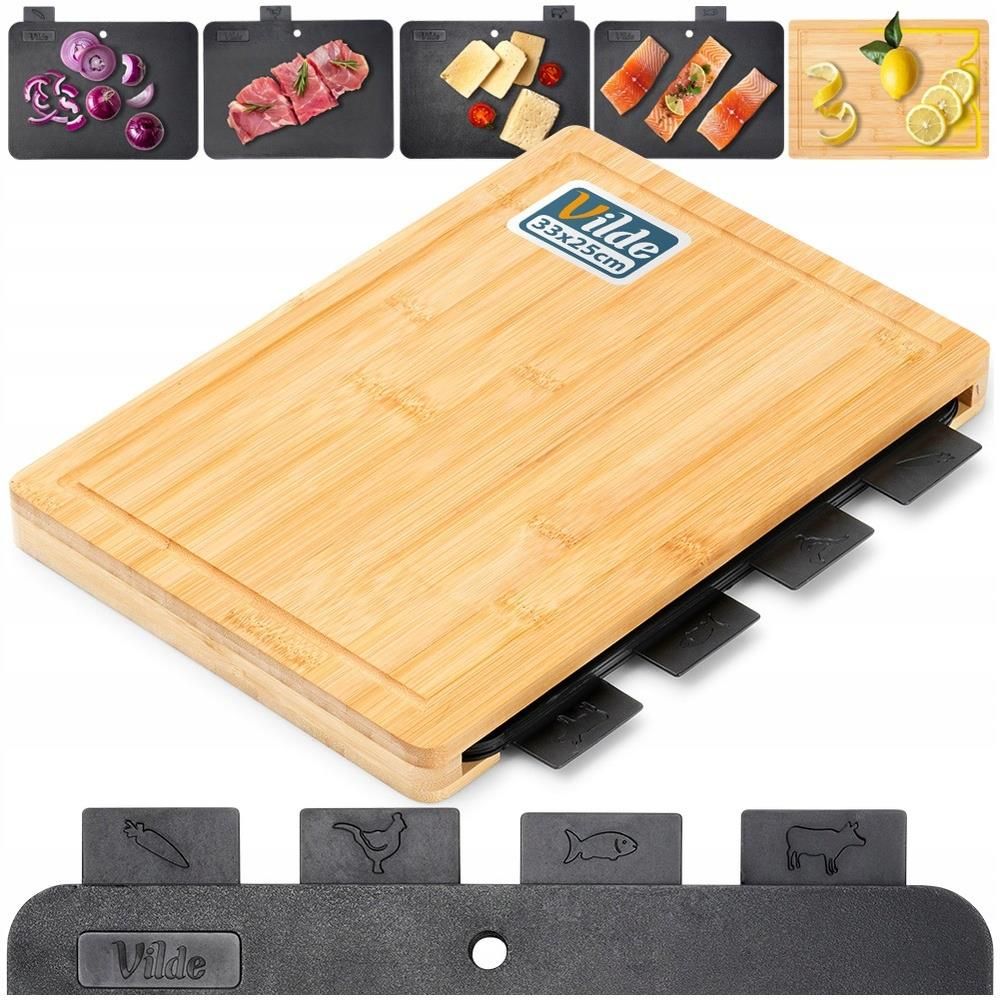 Vilde 4x Deski Kuchenne Do Krojenia Plastikowe Zestaw Desek W Stojaku Bambusowym Otwock