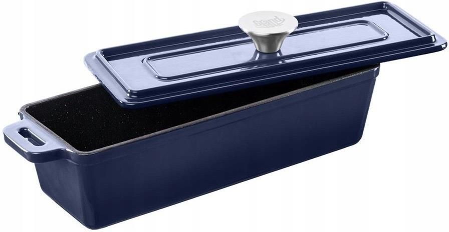 Niebieskie naczynie do pieczenia z pokrywką marki Grand Feu – to klasyczne prostokątne naczynie z emaliowanego żeliwa, które ułatwia przygotowywanie zarówno słodkich, jak i niesłodkich potraw. Naczynie ma wygodne uchwyty po bokach i nadaje się do wszystkich standardowych piekarników i grilli. Do pieczenia, marynowania, duszenia – to naprawdę wszechstronne naczynie. Przyrządzaj i podawaj swoje ulubione potrawy właśnie w nim - ozdobi ono każdy świąteczny stół i pozwoli cieszyć się pysznym jedzeniem. Cechy: Konserwacja: łatwe do czyszczenia. Myć ręcznie. Po umyciu osuszyć. Zabrania się zmywania w zmywarce. Do czyszczenia garnka nie wolno używać produktów zawierających cząstki ścierne. Temperatura pieczenia: do 300 stopni. Może być stosowane we wszystkich typach piekarników i grilli. Emaliowana powłoka naczynia do pieczenia: 450 um +/- 80 um. 3 warstwy. Zalecenie: naczynie emaliowane należy podgrzewać powoli, nie podgrzewać pustego naczynia. Pasuje do grilli ceramicznych Kamado Bono z serii Media, Zalgiris, Grande, Limited.
