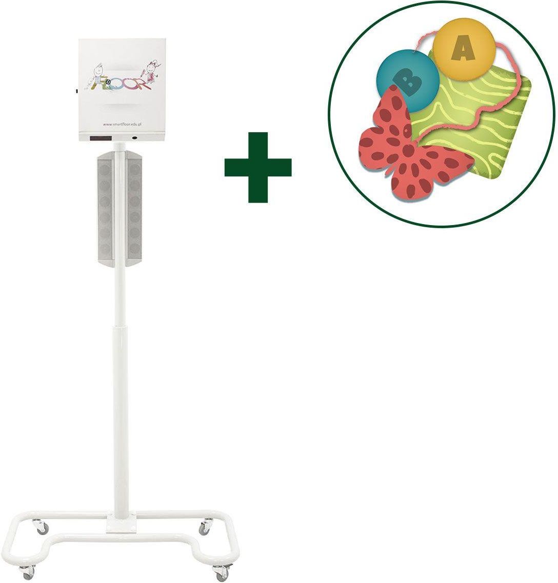 SmartFloor Mobile Audio to nowy, gotowy interaktywny zestaw, zawierający niezwykłą podłogę interaktywną SmartFloor oraz statyw mobilny z głośnikami, pozwalający na jeszcze lepsze wrażenia z zabawy i nauki. Statyw mobilny umożliwia bezproblemowe przemieszczanie podłogi interaktywnej w dowolne miejsce, a także wyświetlenie obrazu wszędzie tam, gdzie nie ma możliwości zamontowania projektora - w centralnym miejscu sali gimnastycznej, na środku klasy czy świetlicy szkolnej. Większy komfort i łatwość użytkowania pozwala cieszyć się zabawą na podłodze interaktywnej SmartFloor, która oprócz standardowej reakcji na ruch, umożliwia również sterowanie za pomocą specjalnych pisaków interaktywnych. Na podłożu wyświetla się panel startowy z podglądem dostępnych pakietów, zawierających zbiór aplikacji pogrupowanych alfabetycznie. SmartFloor doskonale sprawdzi się nie tylko w placówkach edukacyjnych (sale zajęciowe, świetlice, biblioteki, szkolny korytarz), ale także w przestrzeniach publicznych (galerie handlowe, sale zabaw, restauracje, salony samochodowe), placówkach medycznych (szpitale, sanatoria, ośrodki terapeutyczne) czy instytucjach kultury (muzea, kina, domy kultury, galerie sztuki). W połączeniu z pakietem aplikacji „Rewalidacja z Happy Stones” SmartFloor zapewnia interaktywną zabawę i ćwiczenia ruchowe do wykorzystania podczas zajęć rewalidacyjnych z dziećmi. Proponowane ćwiczenia stymulują w szczególności percepcję wzrokową, myślenie logiczne i abstrakcyjne oraz spostrzegawczość. Rozwijają umiejętności językowe, a także zachęcają do podejmowania inicjatywy i działania, także tych związanych z aktywizacją społeczną, poprzez możliwość pracy w grupie. Przyjazna, spokojna grafika stymuluje nie tylko oko, ale i kubki smakowe. Szykujcie się na apetyczną i mądrą zabawę! Aktywne wsparcie rozwoju dziecka Pracując z wykorzystaniem zabaw z pakietu Happy Stones kształtować można: percepcję wzrokową i słuchową; koncentrację uwagi, pamięć i spostrzegawczość; samodzielne, refleksyjne, logiczne, krytyczne i twórcze myślenie; myślenie abstrakcyjne i wyobraźnię; sprawności motoryczne i koordynację ruchową; stawianie pytań, dostrzeganie problemów, zbieranie informacji potrzebnych do ich rozwiązania, planowania i organizacji działania, a także rozwiązywanie problemów; poprawne posługiwanie się językiem polskim w mowie, pozwalające na samodzielną aktywność, komunikację i efektywną naukę; umiejętność obserwacji faktów i zjawisk; rozpoznawanie kolorów, kształtów, wzorów, dostrzeganie podobieństw i różnic; rozpoznawanie odbicia lustrzanego, rytmu układu, kolejności elementów w ciągu; liczenie do 10; samodzielność i podejmowanie inicjatywy; umiejętność współpracy w parach i w grupie; rozumienie poleceń, zasad gier i ćwiczeń oraz respektowanie ich. Cena nie zawiera montażu. Zestaw zawiera: 1 x podłoga interaktywna Smartfloor 1 x mobilny statyw z głośnikami 5 x pakiety aplikacji na start Mali Odkrywcy, W krainie kolorów, Rusz głową, Kulkowo i Na wesoło 1 x pakiet aplikacji Rewalidacja z Happy Stones Specyfikacja statywu z głośnikami: szerokość podstawy: 92 cm długość podstawy: 45 cm rozmiar obrazu rzucanego z minimalnej wysokości (92 cm) - 148 cm x 111 cm rozmiar obrazu rzucanego z maksymalnej wysokości (167 cm) - 266 cm x 197 cm zastosowane dodatkowe zewnętrzne głośniki głośniki 2x20 W wraz z wbudowanym wzmacniaczem audio w urządzenie