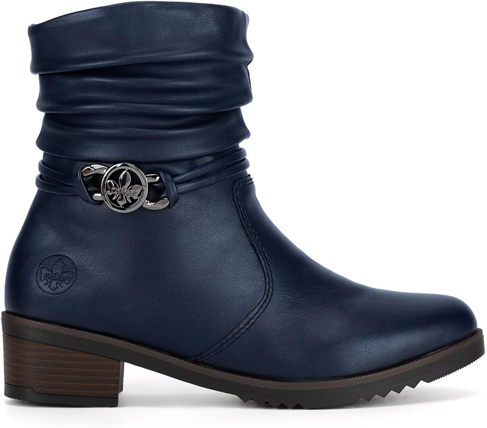 Rieker Y0572 14 Niebieski Botki Rieker Y0572 to nieodłączny element każdej garderoby, który łączy w sobie styl, wygodę oraz funkcjonalność. Te wszechstronne buty doskonale uzupełniają różnorodne stylizacje, od codziennych po bardziej eleganckie, i sprawdzają się w różnych okolicznościach. Dzięki szerokiemu wachlarzowi dostępnych modeli, każdy może znaleźć idealne obuwie, które spełni jego indywidualne oczekiwania. Warto zwrócić uwagę na kilka kluczowych cech, które będą miały wpływ na komfort oraz estetykę. Typ i styl botków Model Rieker Y0572 w eleganckim niebieskim kolorze łączy w sobie dwa style: casualowy i elegancki. Dzięki temu te buty doskonale sprawdzą się zarówno podczas codziennych wypadów, jak i na spotkaniach towarzyskich. Klasyczny design i nowoczesny odcień sprawiają, że można je łatwo łączyć z różnorodnymi elementami odzieży, co czyni je uniwersalnym dodatkiem do każdej stylizacji. Materiał i wysokość cholewki Buty te wykonane są z wysokogatunkowego tworzywa syntetycznego, co gwarantuje ich trwałość oraz łatwość w utrzymaniu. Cholewka sięgająca do kostki nie tylko nadaje stylowy wygląd, ale także zapewnia stabilizację stopy. Wysokość ta sprawia, że model jest idealny na sezon jesienno-zimowy, skutecznie chroniąc stopy przed chłodem. Ocieplenie i komfort Jednym z kluczowych atutów opisywanego modelu jest ocieplenie wnętrza. To sprawia, że buty są doskonałym wyborem na chłodniejsze dni, oferując komfort i ciepło w każdej sytuacji. Dzięki temu można cieszyć się wygodą, niezależnie od planowanych aktywności na świeżym powietrzu. Rodzaj zapięcia i funkcjonalność Praktyczne zapięcie na suwak to kolejna zaleta, która ułatwia zakładanie i zdejmowanie obuwia. To wygodne rozwiązanie doceni każdy, kto w codziennym życiu ceni sobie oszczędność czasu i funkcjonalność. Możliwość szybkiego założenia butów bez dodatkowych przeszkód sprawia, że te buty są jeszcze bardziej praktyczne. Podeszwa i rodzaj obcasa Solidna podeszwa zapewnia dobrą przyczepność, co jest istotne w trudnych warunkach atmosferycznych. Obcas na słupku łączy elegancję z komfortem, oferując stabilność oraz wygodę podczas chodzenia. Taki wybór obcasa pozwala na pewny krok, nie rezygnując jednocześnie z modnego wyglądu. Zalety modelu Oto kluczowe cechy, które wyróżniają model Rieker Y0572: Stylowy design: niebieski kolor i klasyczna forma ułatwiają dopasowanie do wielu stylizacji, Wysokiej jakości materiały: trwałe tworzywa syntetyczne zapewniają długotrwałe użytkowanie, Ocieplenie: idealne na chłodniejsze dni, oferujące ciepło i komfort, Szybkie zapięcie: zamek błyskawiczny umożliwia szybkie zakładanie i zdejmowanie, Stabilny obcas na słupku: łączy elegancję z wygodą, zapewniając pewny krok. Buty Rieker Y0572 to model, który łączy funkcjonalność z estetyką, co czyni je interesującą propozycją dla osób poszukujących wygodnego oraz stylowego obuwia na chłodniejsze dni.