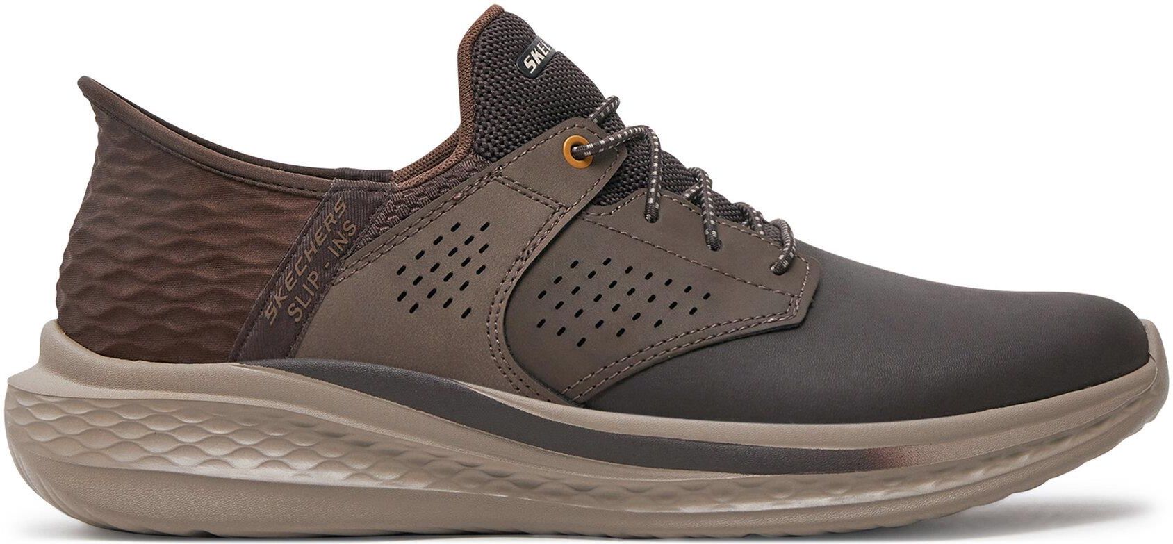 Skechers Slip-Ins: Slade - Macklin Buty Sneakersy Męskie 46 Specyfikacja produktu Producent - Skechers Płeć - Męskie Kolor dominujący - Brązowy Kolor Producenta - Chocolate Leather/Mesh/Synthetic Materiał - Skóra Licowa Materiał wkładki - Inny Materiał Podeszwa wewnętrzna - Pianka Poliuretanowa …