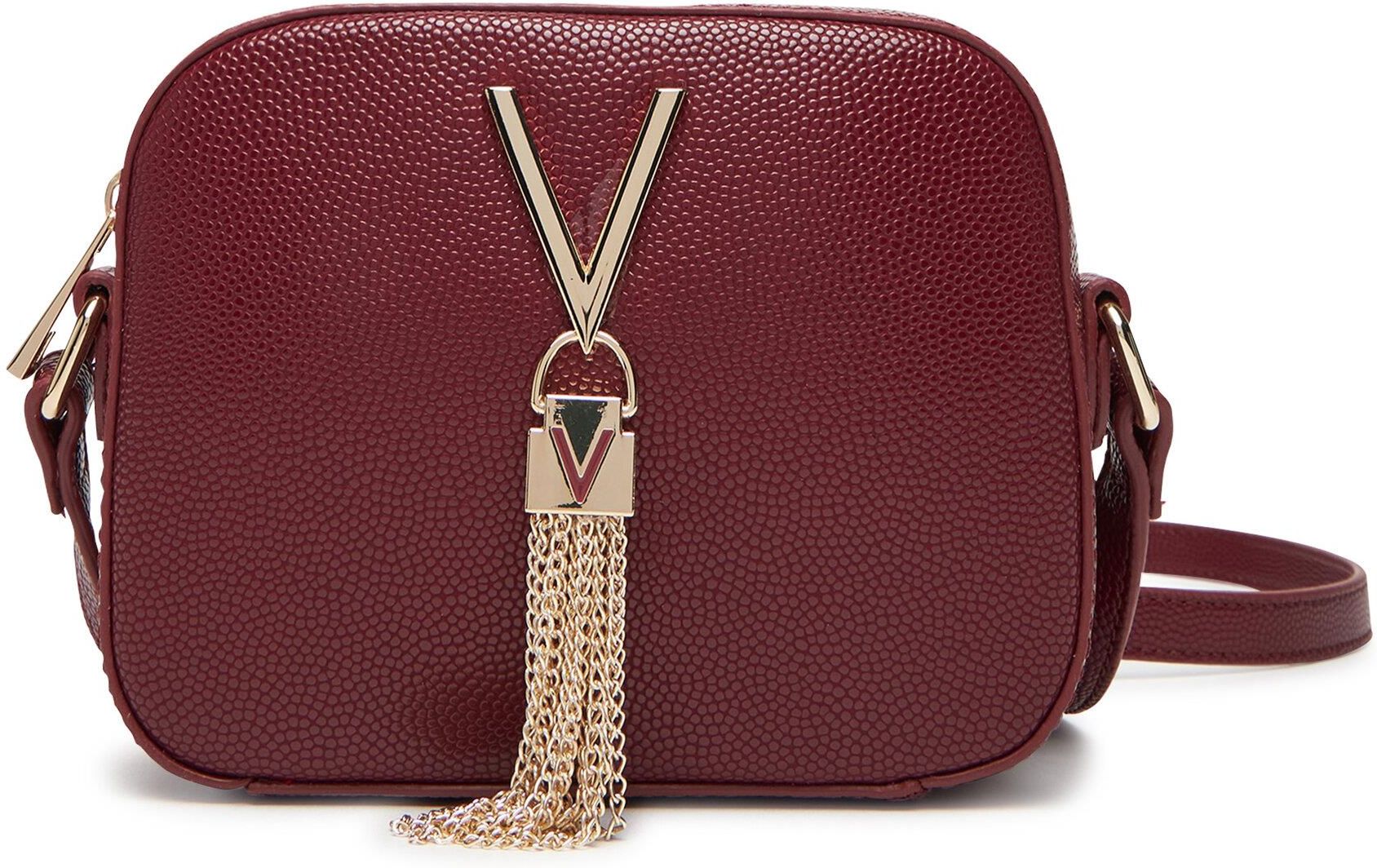 VALENTINO Bordowa torebka Divina Camera Bag Valentino bordowa torebka Divina Camera Bag to elegancki, kompaktowy model, który łączy klasyczną formę z nowoczesnym wykończeniem. Idealna na co dzień i na specjalne wyjścia — doda stylu każdej stylizacji. Kolor: Bordowy Model: VBS1R409G 069 BORDEAUX …