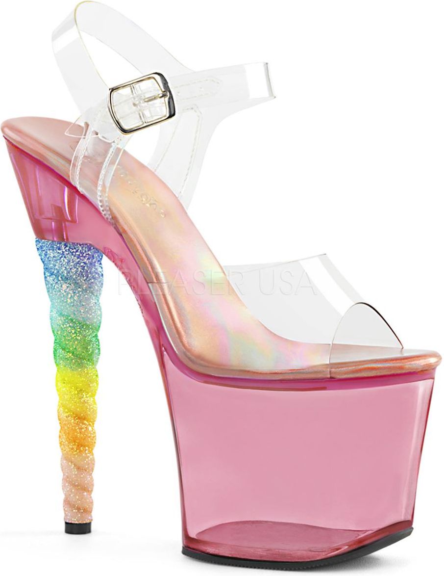 7 (178mm) Heel, 3 1/4 (83mm) Platform Ankle Strap Sandal Featuring Tinted Platform Bottom and Glittered Ombre Unicorn Heel
