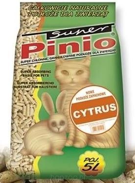 Super Pinio jest uniwersalnym granulatem stosowanym jako ściółka dla zwierząt domowych takich jak: koty, chomiki, świnki morskie, króliki, szynszyle oraz ptaki. Ma on kształt wałeczków o średnicy 6 mm i długości od 6 do 12 mm. Jest to produkt naturalny powstały z mikrowłókien drewna sosnowego i świerkowego bez dodatków chemicznych. Posiada bardzo wysoką wchłanialność oraz doskonale wiąże zapachy, jest przyjazny dla środowiska i zwierząt, można go z łatwością usunąć drogą sanitarną ponieważ jest w 100% biologicznie odbudowywalny. Granulat ten poprzez swoje właściwości stwarza naturalne i przyjazne środowisko dla naszego pupila, a nam pozwala w prosty i wygodny sposób utrzymać czystość i higienę w każdej kuwecie i klatce. Zalety: - duża chłonność, - pochłanianie nieprzyjemnych zapachów, - łatwość usuwania, - naturalność, - ulega biodegradacji. Surowiec: Naturalne drewno z drzew iglastych.O zapachu cytrynowym.