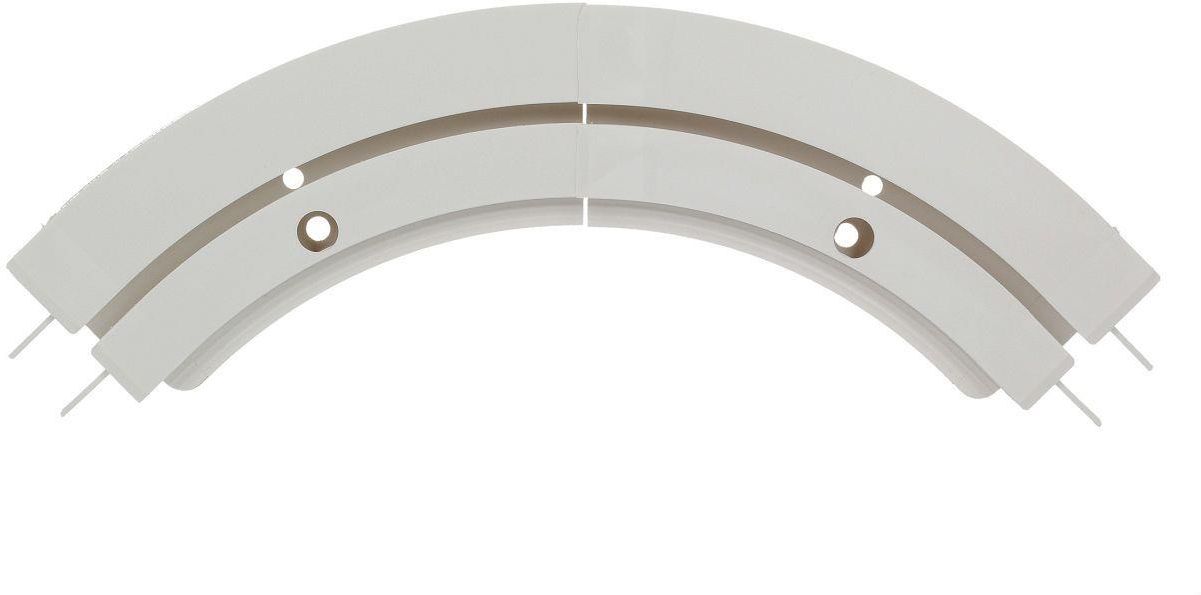 Łuk przelotowy zewnętrzny do szyny pojedynczej. Składa się z dwóch części, co umożliwia większą swobodę w kształtowaniu szyny. Szyny przysufitowe to doskonała alternatywa dla tradycyjnych karniszy, szczególnie polecany tam gdzie odległość od okna do sufitu nie pozwala zamontować karnisza. Występuje w wersji jedno i dwutorowej.Szyny można łączyć ze sobą w różne kształty pomocne przy tym są dodatkowe elementy dostępne w sprzedaży takie jak: szyny proste, łuki przelotowe zewnętrzne i wewnętrzne, listwy osłonowe tzw. maskownicę oraz i inne drobniejsze elementy. Wyprodukowana z tworzywa PCV co gwarantuje trwałość koloru. Komplet zawiera 2 zaślepki do otworów montażowych. Wymiar: odległość od ściany 15,5cm. Materiał: tworzywo PCV. Kolor: biało-szary.