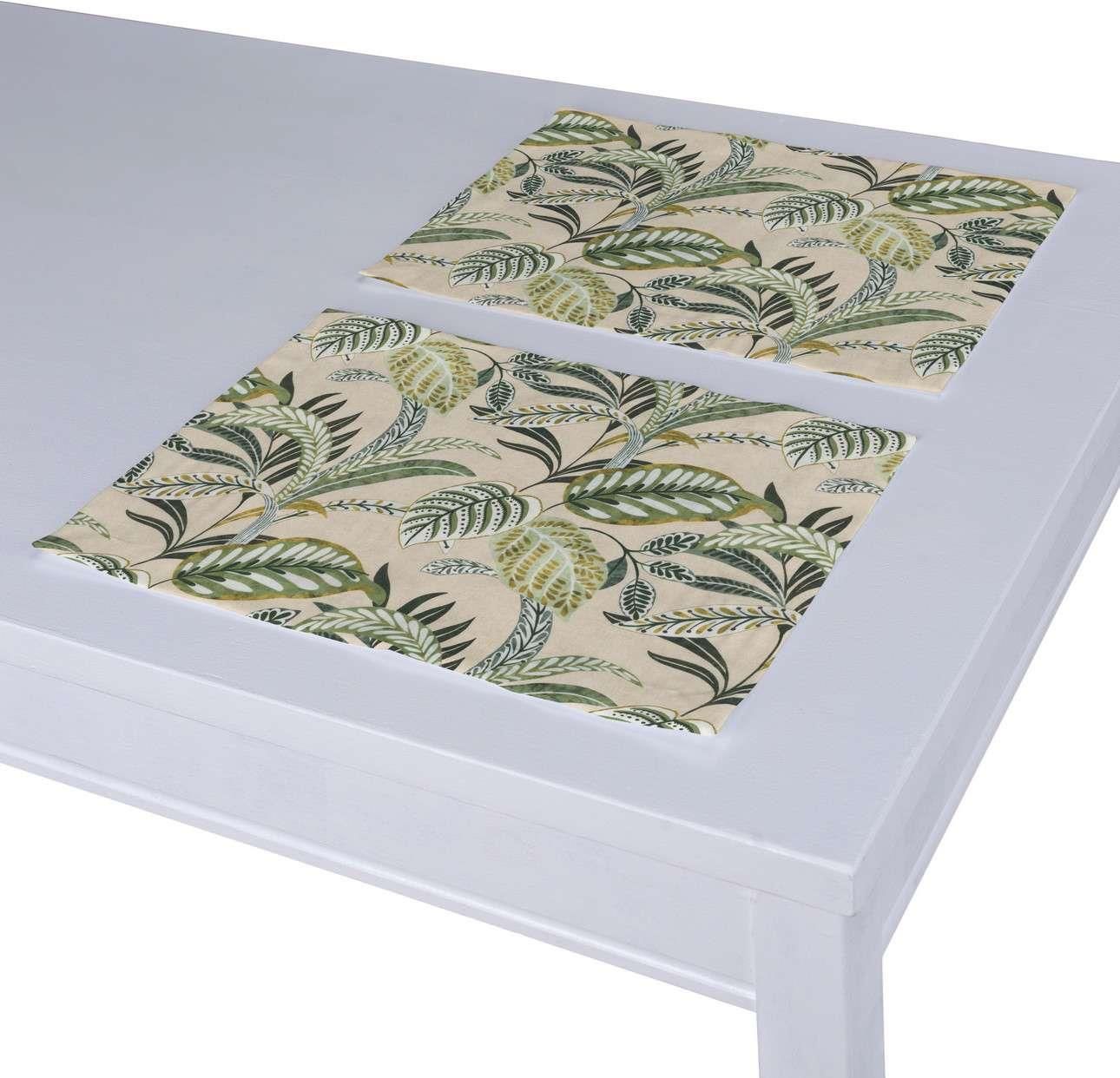 Dekoria.pl Podkładka 2 sztuki, oliwkowo-zielone liście na lnianym tle, 40 x 30 cm, Tropical Island Ożarów Mazowiecki