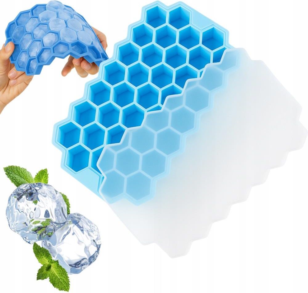 Silikonowa foremka do lodu z pokrywką „Plaster miodu” – 37 kostek lodu w nowoczesnej formie Foremka do lodu z silikonową pokrywką to praktyczne i estetyczne rozwiązanie, które ułatwia przygotowanie idealnych kostek lodu. Wykonana z bezpiecznego silikonu spożywczego, gwarantuje łatwe wyjmowanie lodu bez pęknięć i pozostawia zamrażarkę czystą oraz wolną od nieprzyjemnych zapachów. Jej kształt przypominający sześciokątne komórki plastra miodu sprawia, że każda kostka wygląda oryginalnie i efektownie — idealnie do napojów, koktajli czy deserów. Foremka w kolorze jasnoniebieskim łączy nowoczesny wygląd z funkcjonalnością. Dzięki elastycznemu materiałowi lód można wyjąć jednym ruchem, a hermetyczna pokrywka chroni zawartość przed rozlaniem i zabrudzeniem. Forma jest odporna na temperatury od -40°C do +230°C, dlatego nadaje się nie tylko do zamrażania wody, soków, kawy czy sosów, ale również do przygotowania mini porcji deserów, czekolady lub kostek ziołowych. Silikonowa forma na lód – wszechstronność i wygoda użytkowania Foremka została zaprojektowana z myślą o codziennym użytkowaniu w domu, biurze lub gastronomii. Miękki silikon nie odkształca się, a jednocześnie zachowuje stabilność dzięki mocnym ściankom. Pokrywka idealnie przylega, co zapobiega wyciekom i mieszaniu się zapachów w zamrażarce. Dzięki kompaktowym wymiarom forma nie zajmuje dużo miejsca, można ją łatwo ustawić jedna na drugiej. Wielofunkcyjność produktu sprawia, że sprawdzi się nie tylko w kuchni — to również świetny gadżet do przygotowywania kostek kawowych, sokowych, czekoladowych lub kosmetycznych, np. masek lodowych do twarzy. Zalety foremki do lodu „Plaster miodu” Elastyczny silikon spożywczy – łatwe wyjmowanie kostek bez pękania. Hermetyczna pokrywka – chroni przed rozlaniem i pochłanianiem zapachów. Oryginalny kształt komórek – tworzy estetyczne, sześciokątne kostki lodu. Szeroki zakres temperatur – od -40°C do +230°C, idealna do zamrażania i pieczenia. Uniwersalne zastosowanie – do lodu, soków, sosów, czekolady i kosmetyków. Bezpieczna i ekologiczna – bez BPA, odporna na zabrudzenia i odkształcenia. Łatwa w czyszczeniu – można myć ręcznie lub w zmywarce. Silikonowa foremka do lodu z pokrywką „Plaster miodu” to idealne połączenie funkcjonalności i estetyki. Dzięki niej przygotujesz równe, efektowne kostki lodu, zachowując czystość w zamrażarce i oszczędzając czas. To niezbędny gadżet w każdej nowoczesnej kuchni.