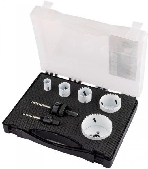 Otwornice bi-metalowe 19-68 mm, zestaw 7 sztuk 56T723 marki GRAPHITE o wysokości 51 mm (dla średnic 19, 29, 33 mm) i 44 mm (dla średnic 51, 68 mm) umożliwiają wiercenie do głębokości 38 mm. Wykonane zostały ze stali szybkotnącej HSS i wyposażona są w gwint 1/2" x 20 UNF (19, 29 mm), 5/8” x 18 UNF …